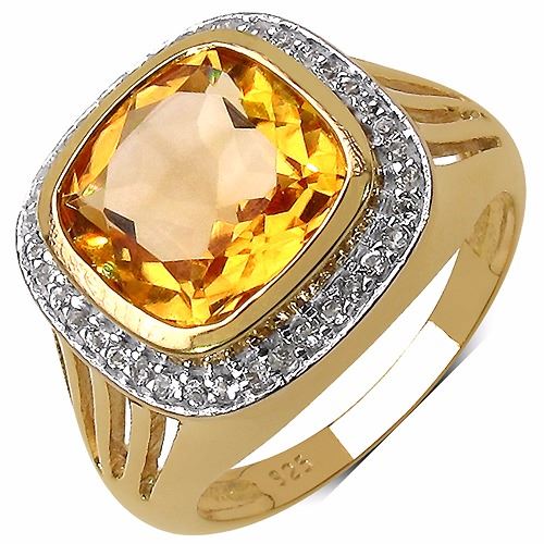 Golden Citrine Cushion 10.00mm - 1Pc + White Topaz Round 1.00mm - 37Pcs ( White Pan Rhodium )