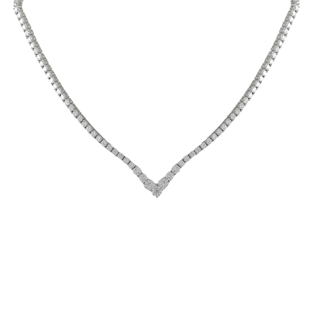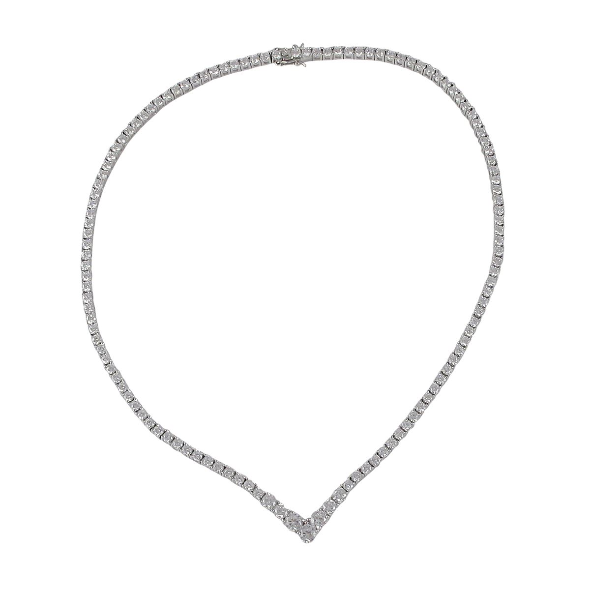 Sterling Silver Graduated CZ "V" Shaped Necklace -18"