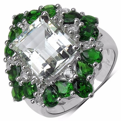 Sterling Silver Green Amethyst and Chrome-Diopside Ring