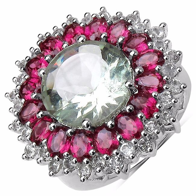 Sterling Silver Green Amethyst and Rhodolite Ring