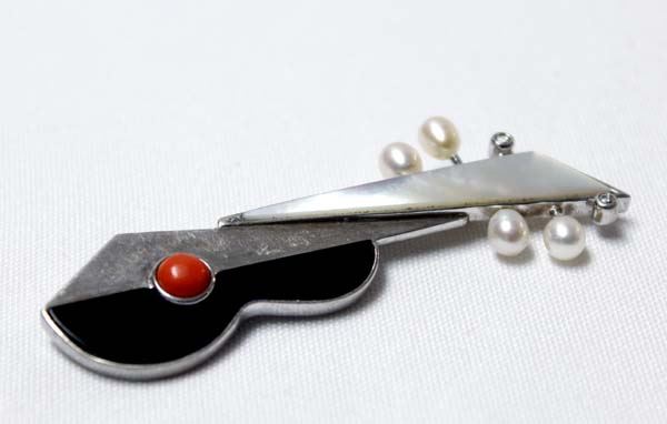 Fabulous Sterling Silver Guitar Pin, measures 3''L x 1''W, marked .925