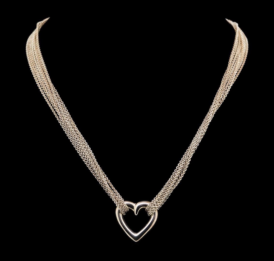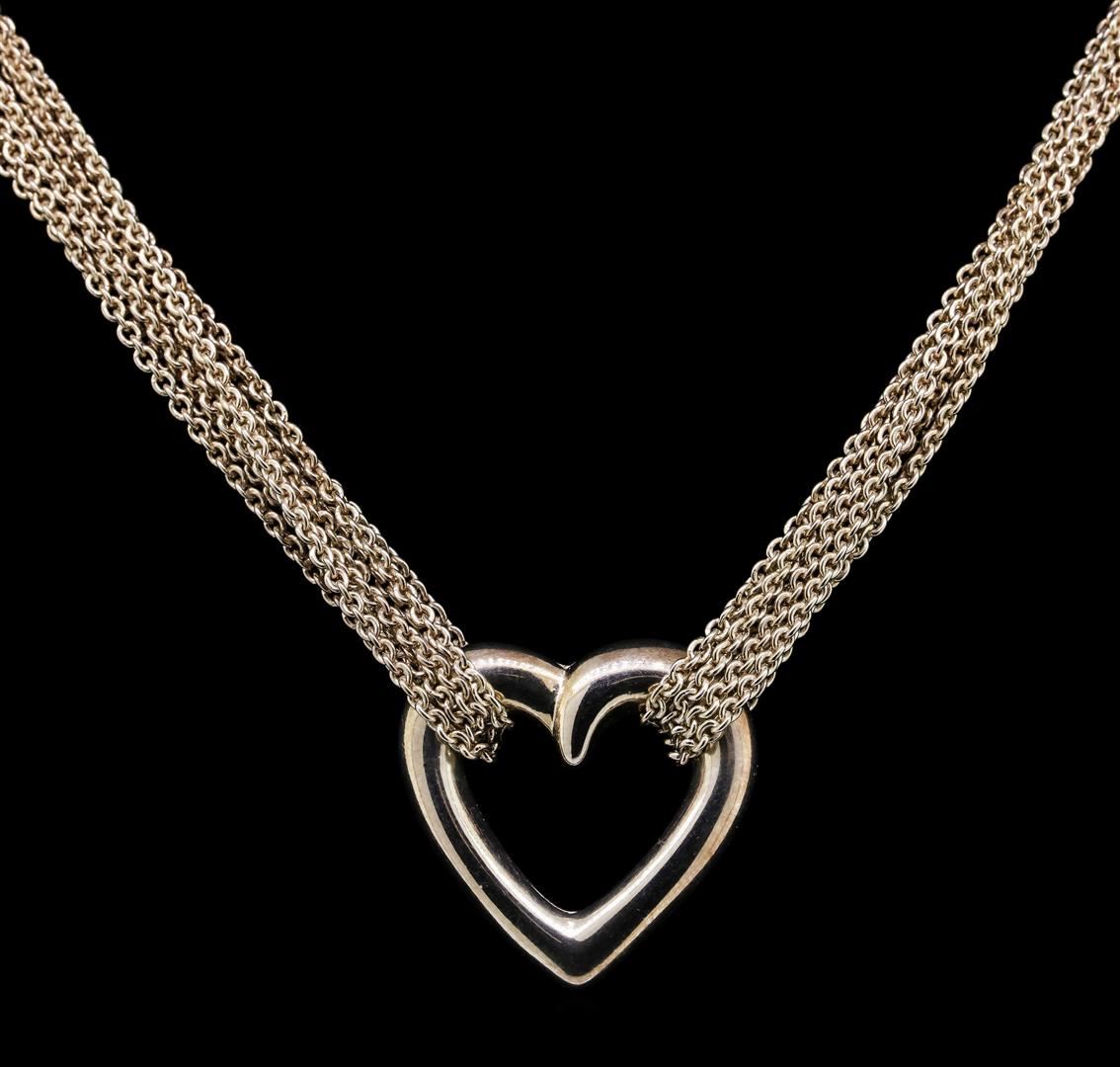 One lady's heart shape multi-chain necklace featuring: sterling silver weighing 26.5 grams.
