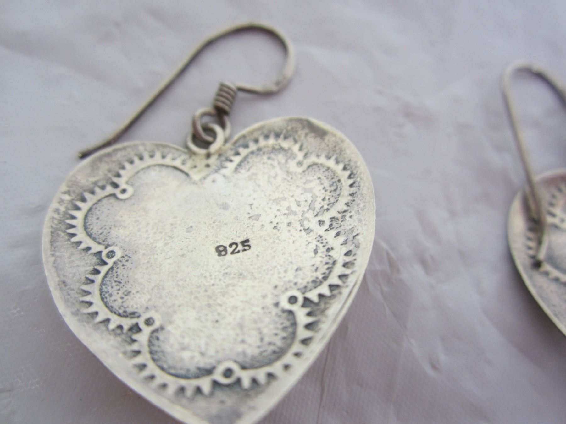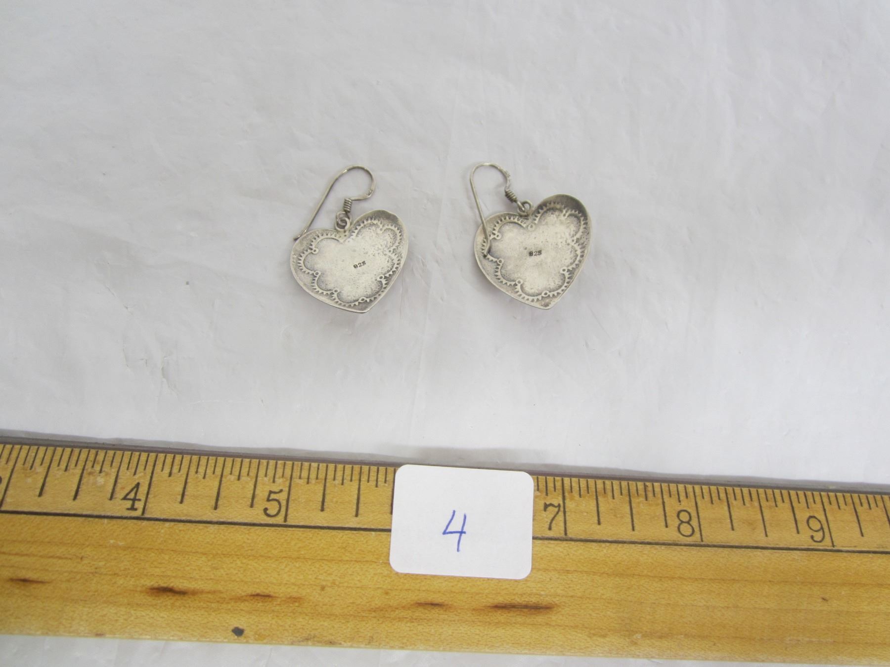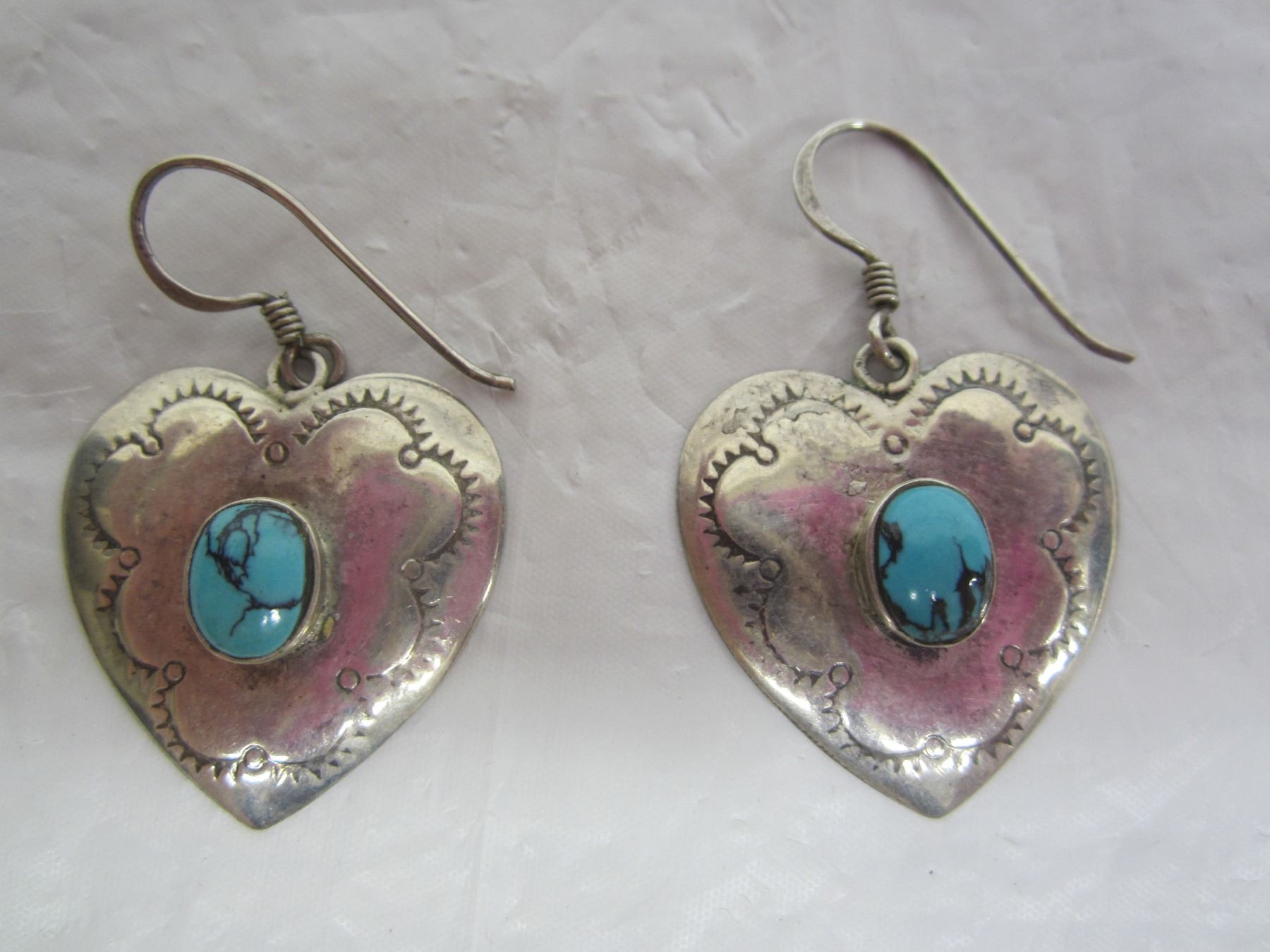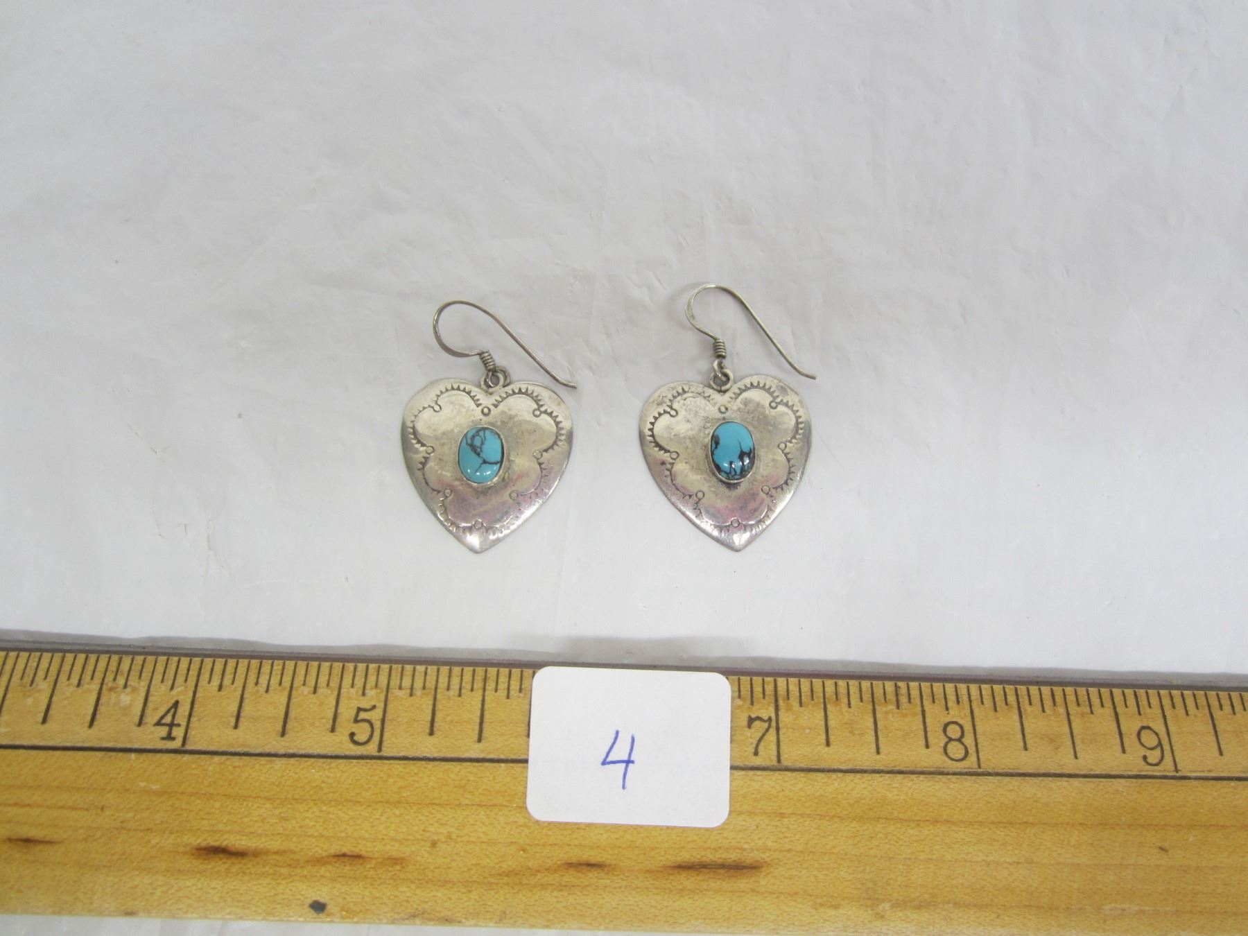 Sterling Silver Heart Shaped Ear Rings with 2 Turquoise Stones in it
