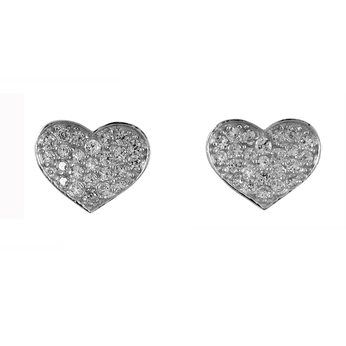 Sterling Silver Heart Stud Earrings With Czs.