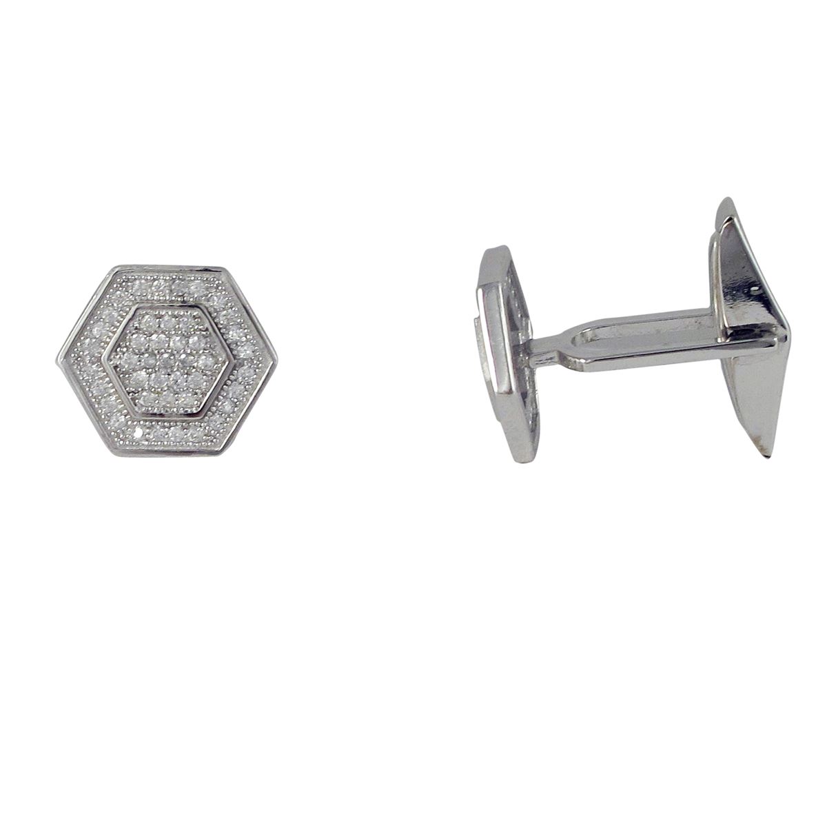 Sterling Silver Hexagon CZ Cufflink