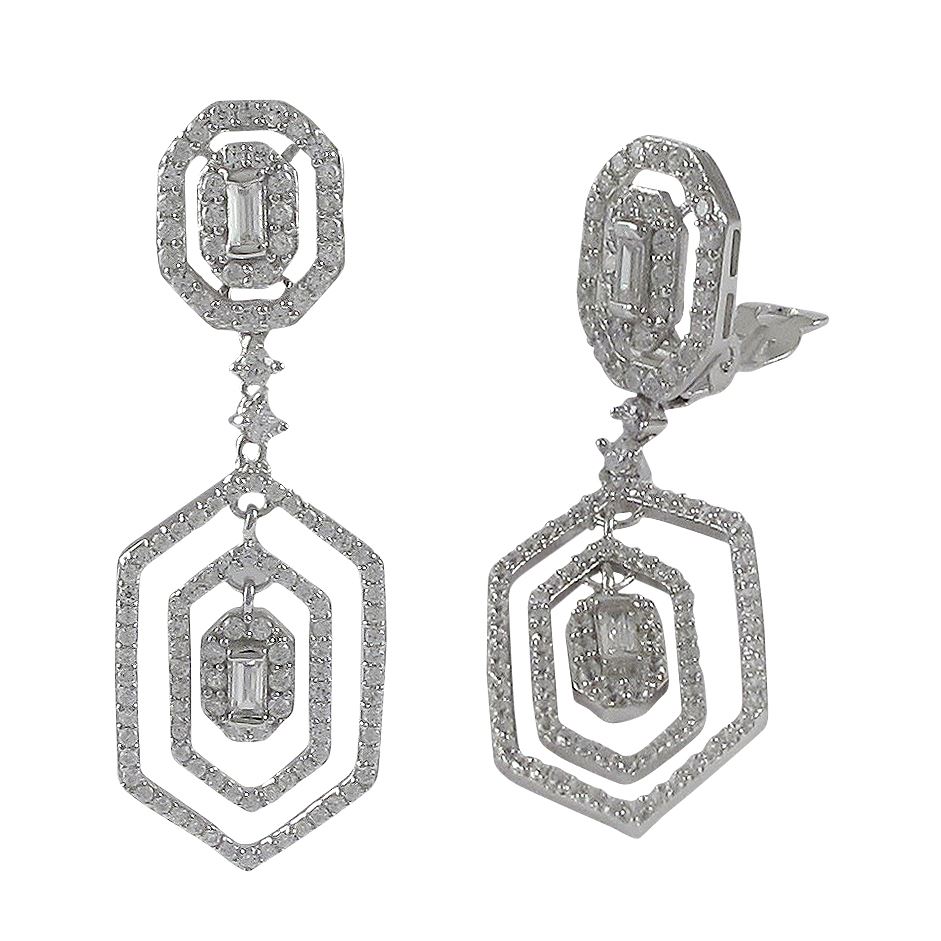 Sterling Silver Hexagon Shape CZ Clip On Earrings -1.93"