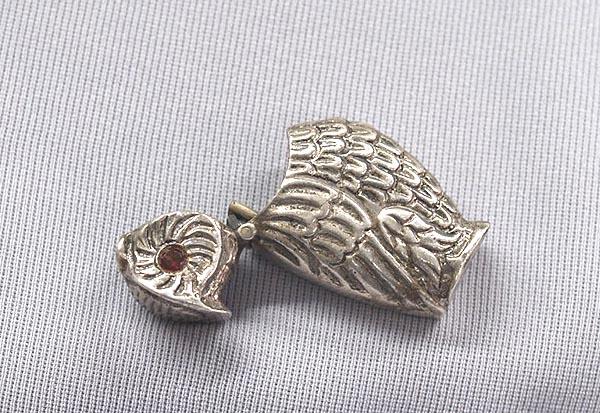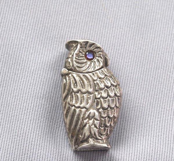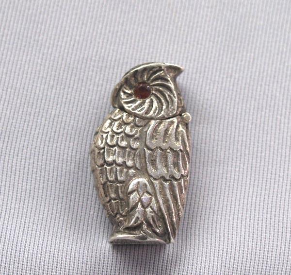 Sterling Silver Hinged Owl Box, stamped .925 Silver on bottom, measures approx. 1.75''H x .5''W x .75''L, red crystal eyes. Buyers Pay Actual Shipping and Handling Charges(see terms and conditions for more information)