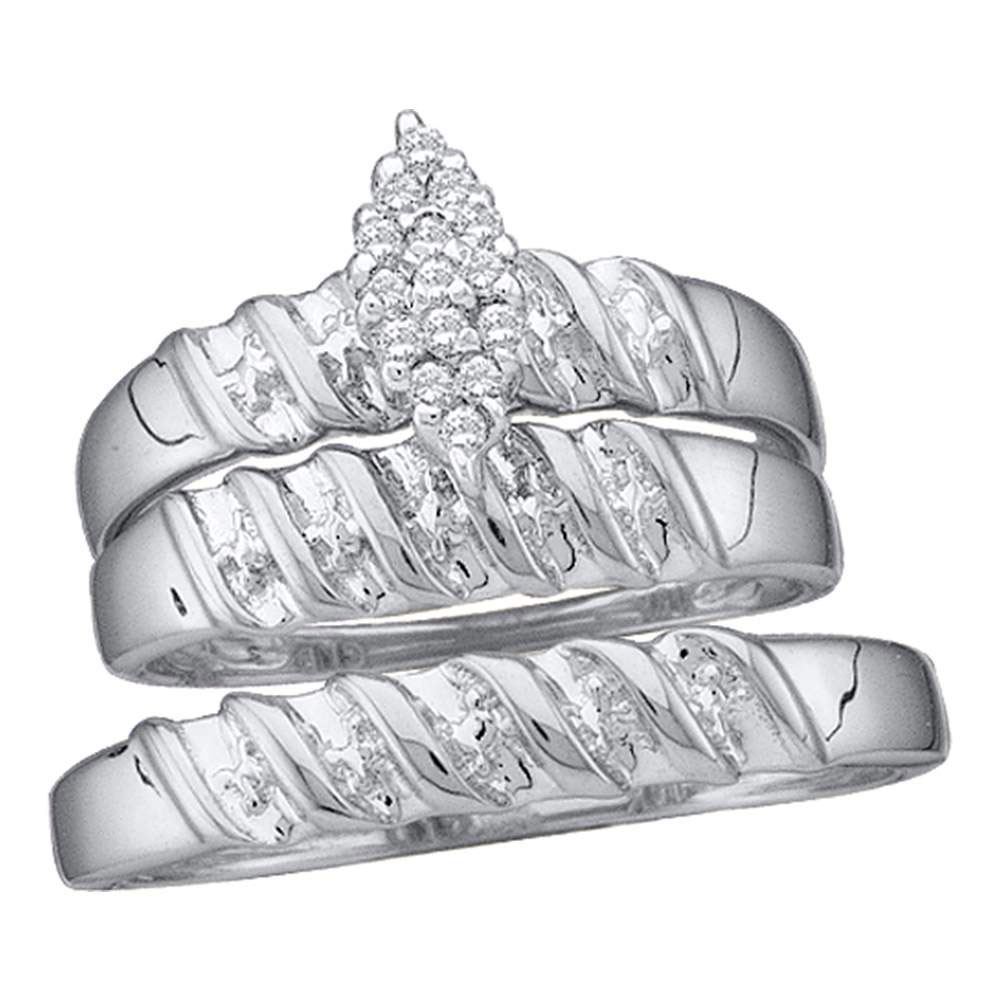 Sterling Silver His Hers Round Diamond Cluster Matching Wedding Set 1/10 Cttw