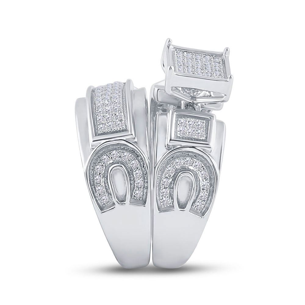 Sterling Silver His Hers Round Diamond Cluster Matching Wedding Set 1/2 Cttw
