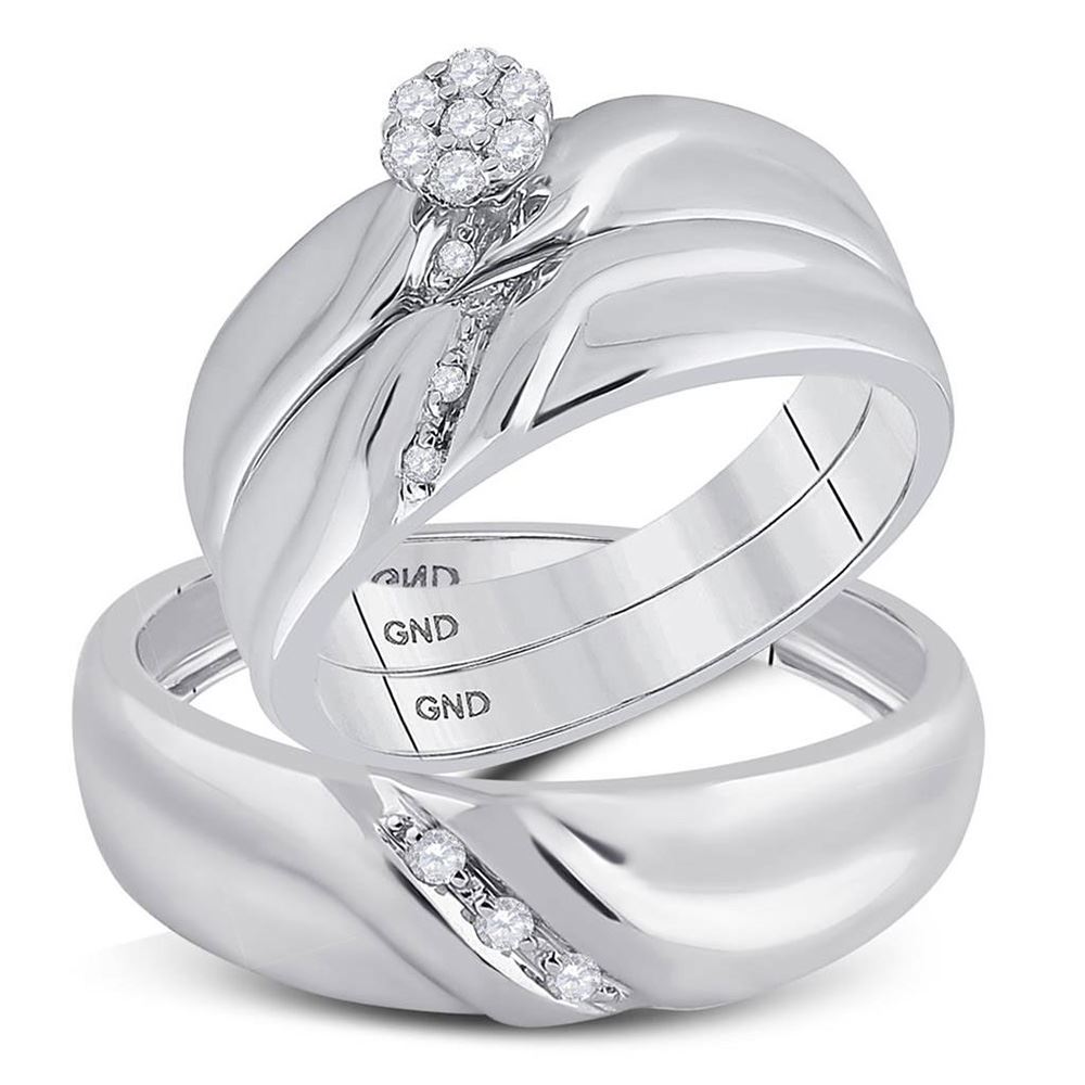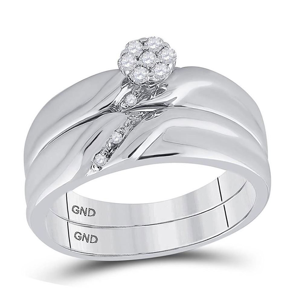 Sterling Silver His Hers Round Diamond Cluster Matching Wedding Set 1/6 Cttw