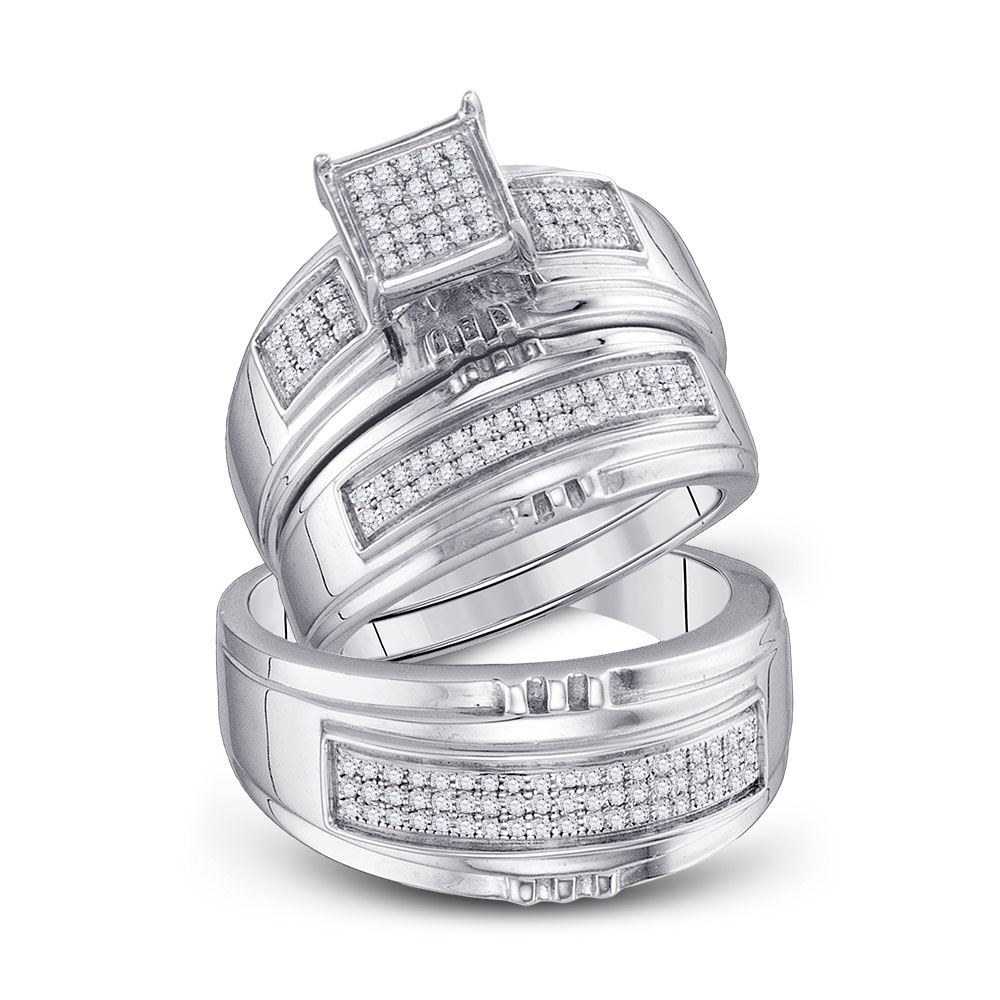 Sterling Silver His Hers Round Diamond Matching Wedding Set 3/8 Cttw
