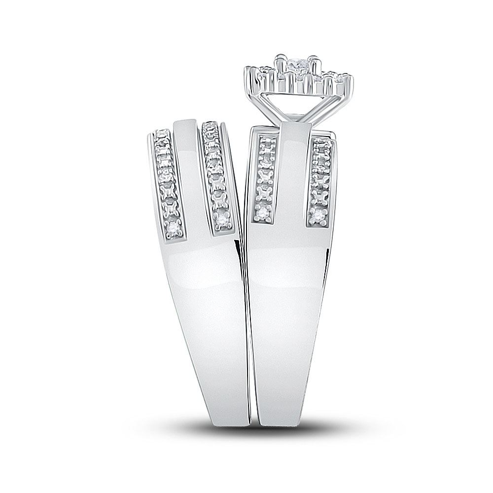 Sterling Silver His Hers Diamond Solitaire Matching Wedding Set 1/4 Cttw Sterling Silver