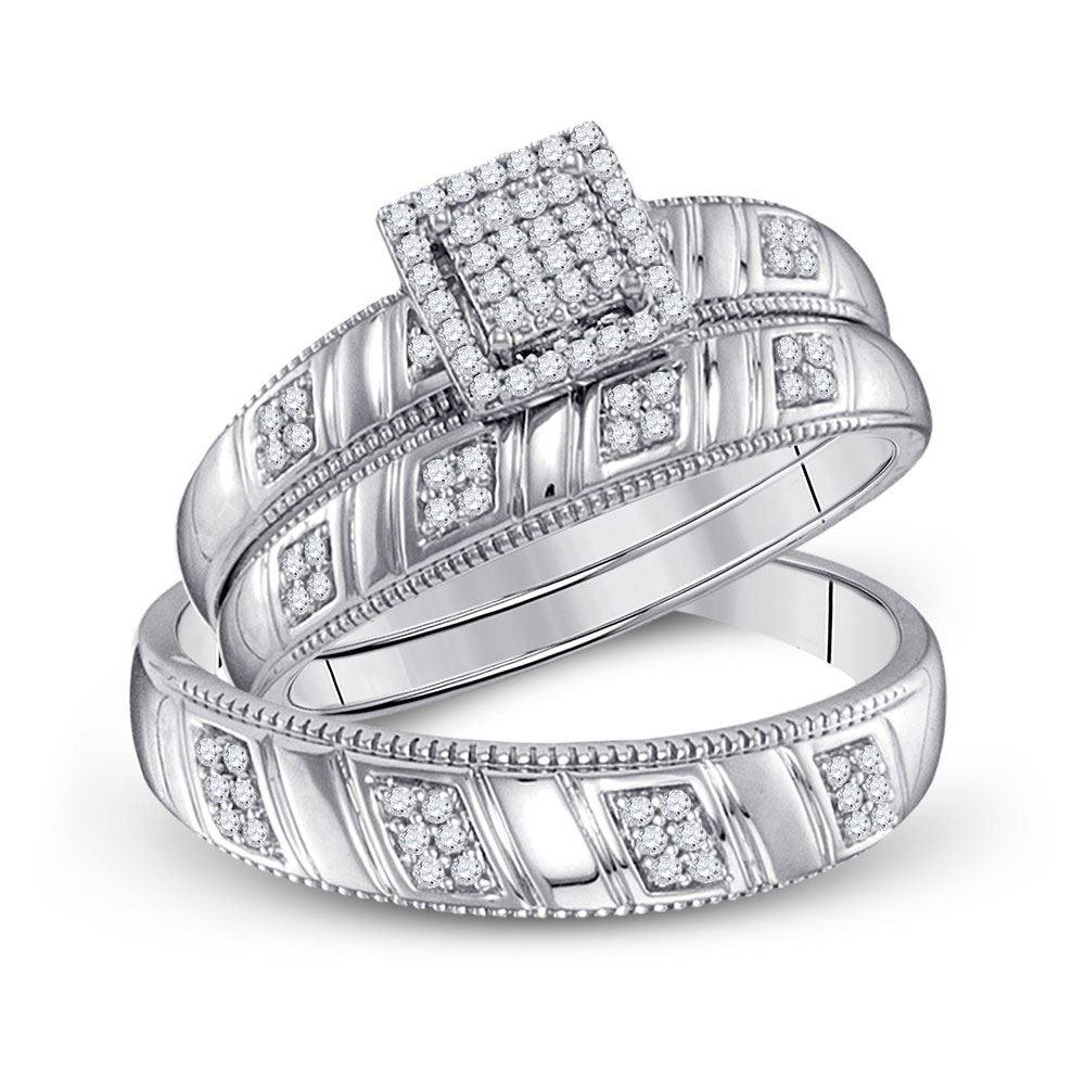 Sterling Silver His Hers Round Diamond Square Matching Wedding Set 1/4 Cttw