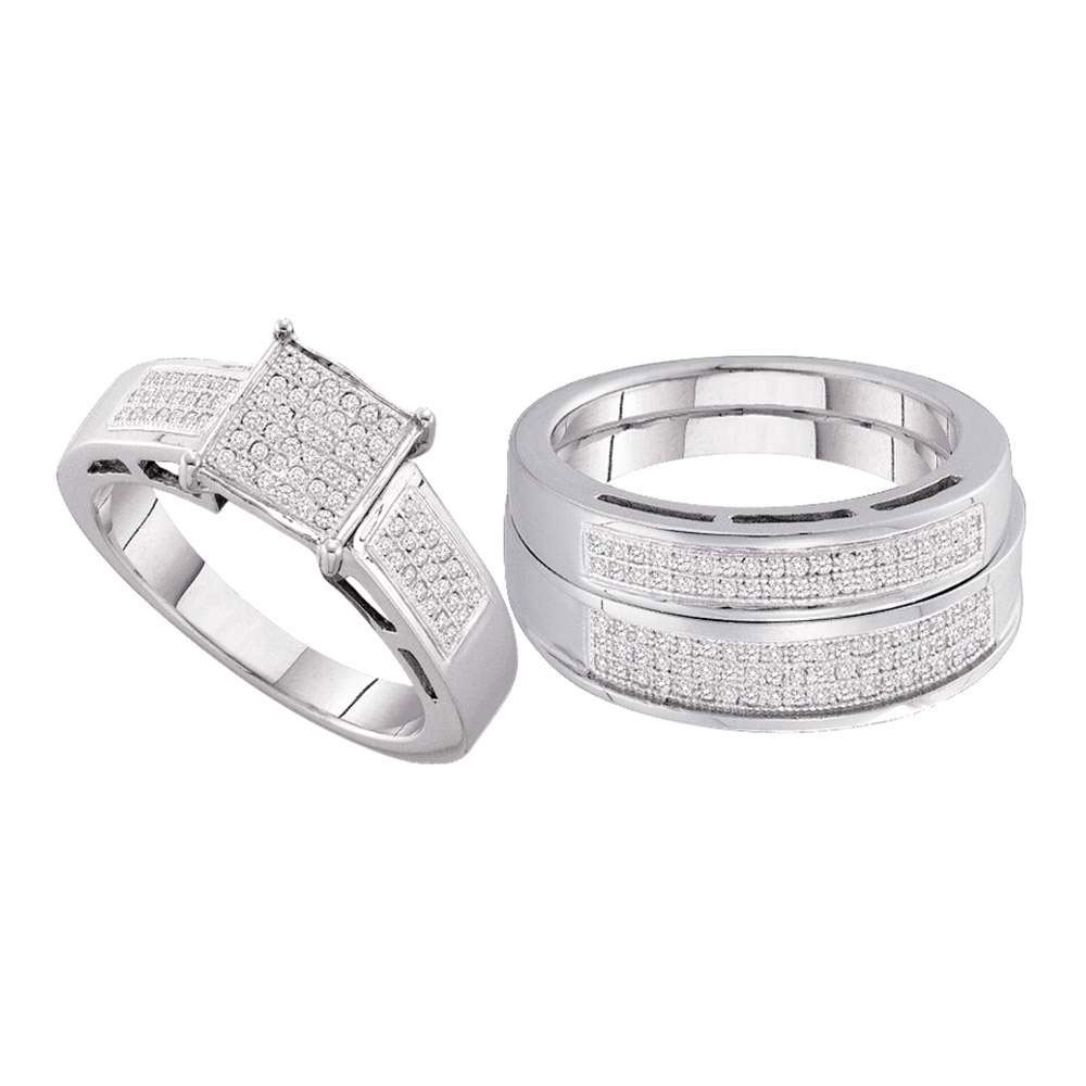 Sterling Silver His & Hers Round Diamond Cluster Matching Bridal Wedding Ring Band Set 5/8 Cttw