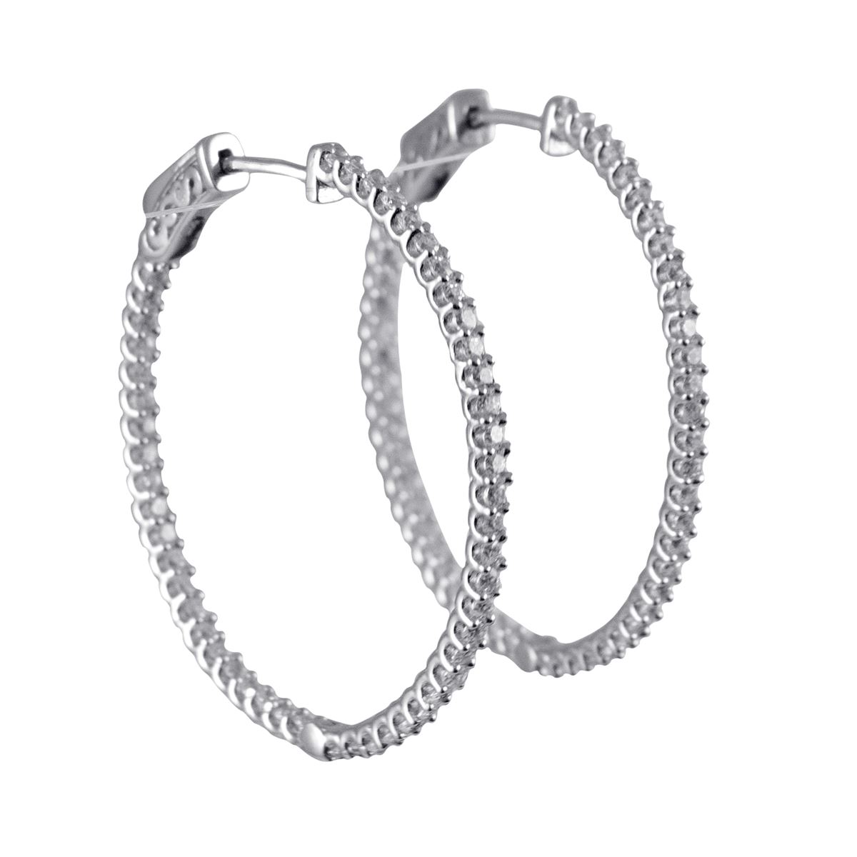 Sterling Silver Hoop Earrings, 32X28mm, With White Czs