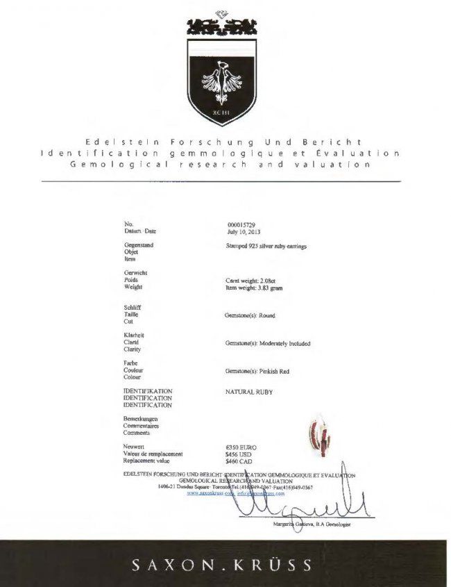 Sterling Silver Hoop Earrings with Natural Rubies; suggested replacement value: $460; accompanied with certificate; D :1.7 cm each, 3.83 grams total