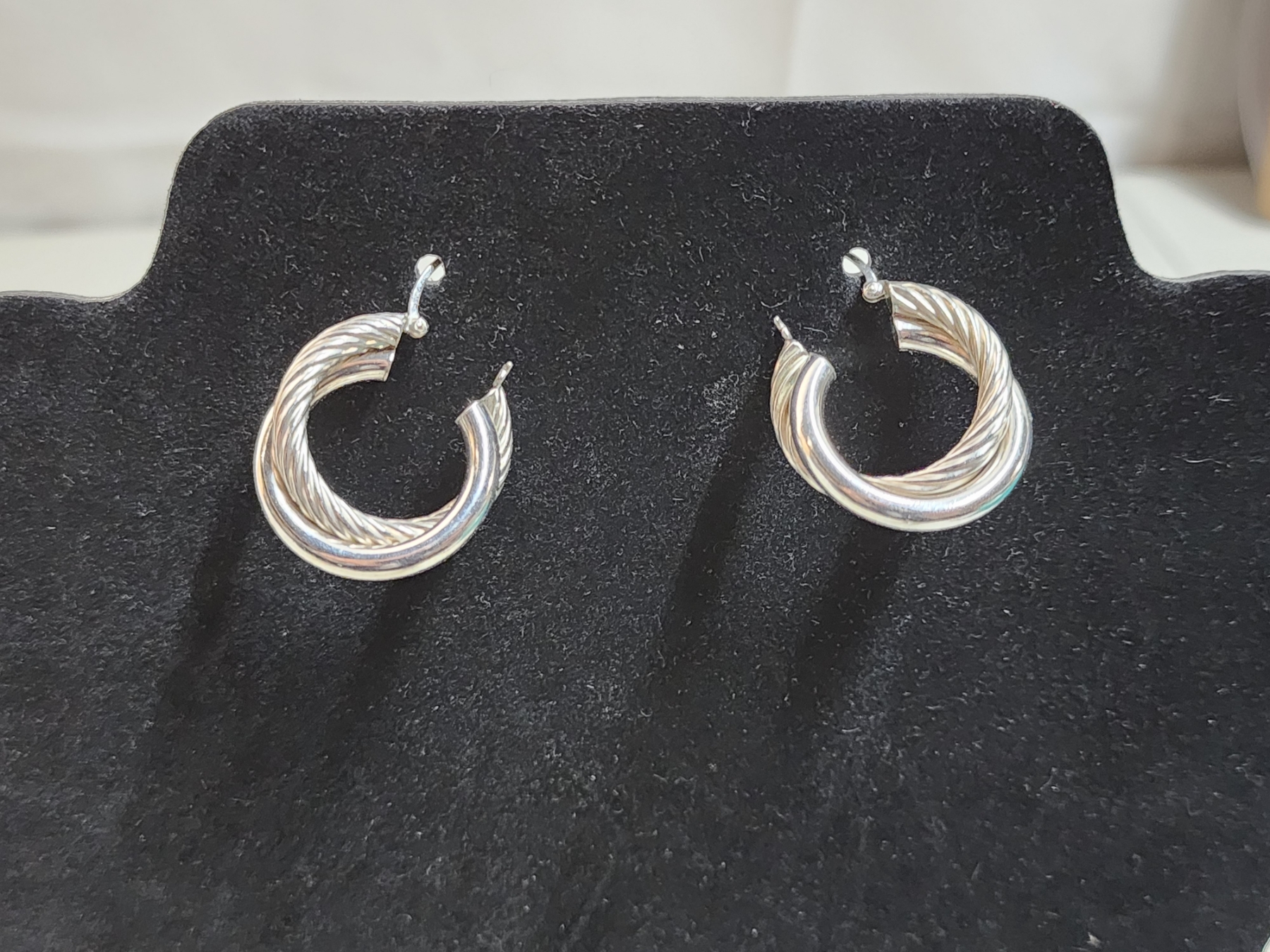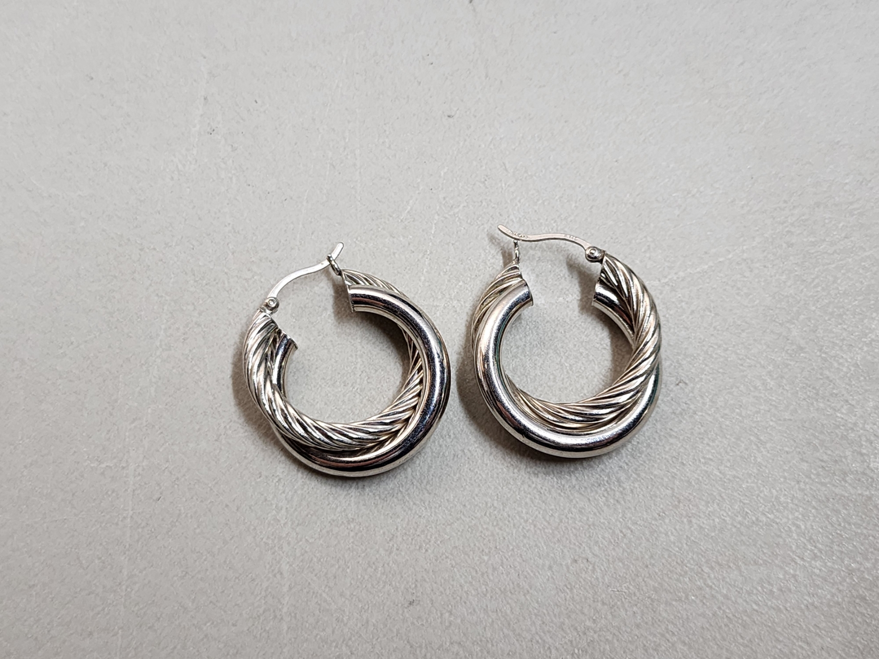 Sterling Silver Hoop Twist Earrings TW: 6.4g
