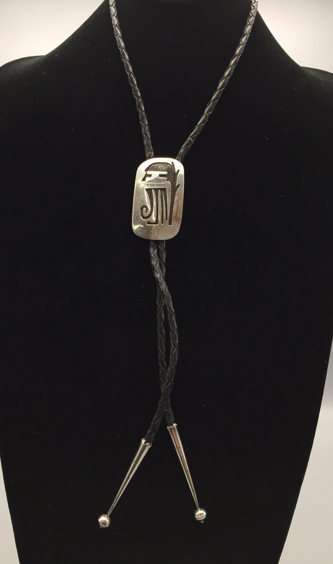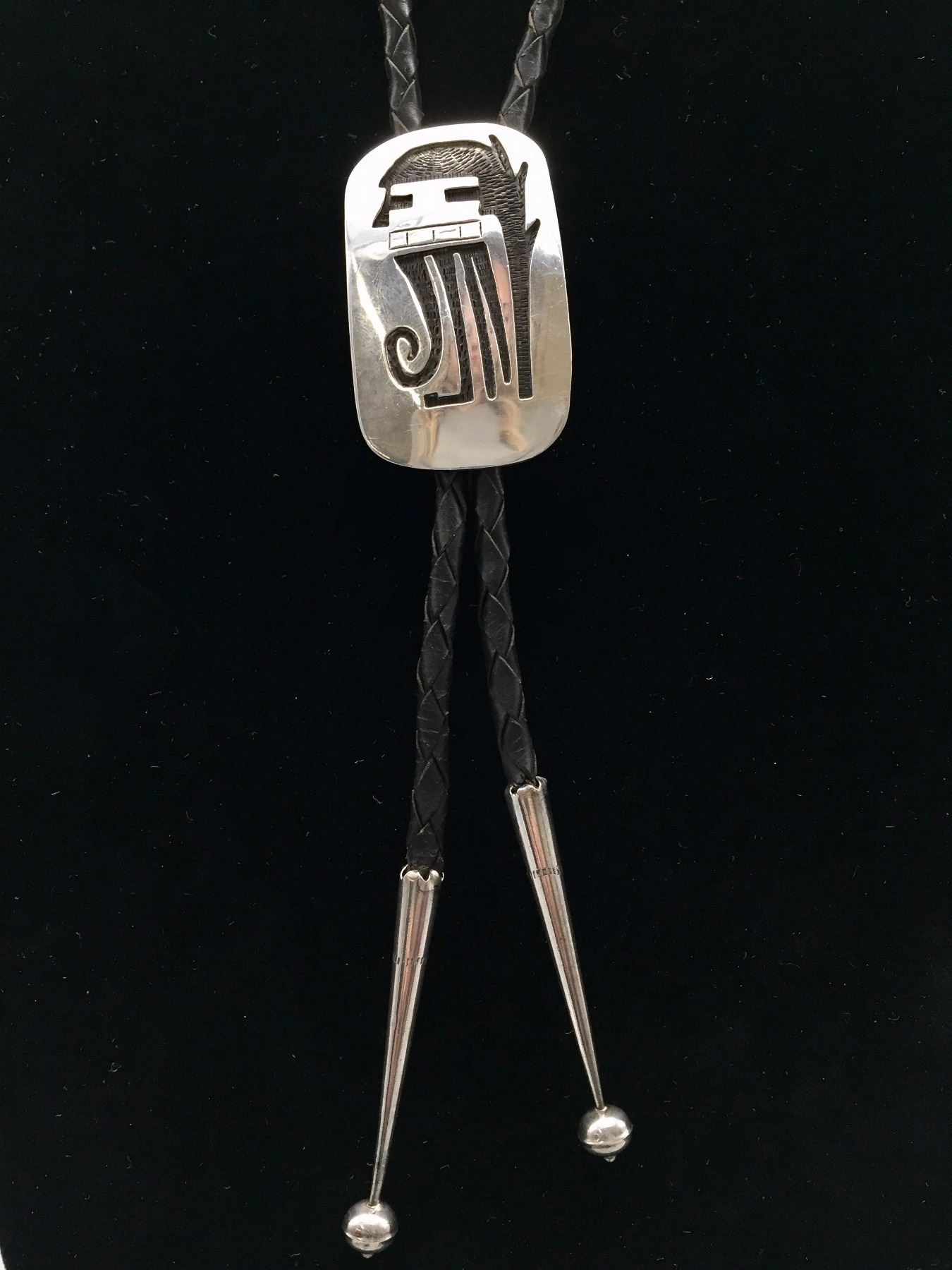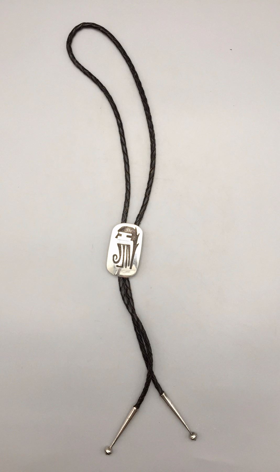 Description: Sterling silver, Hopi made bolo. Maker: Joe Coochwytewa, Hopi. Approx. Age: Vintage, circa 1960s (has a Bennett C-31 clasp on the back which was made from the mid 50s - mid 60s).