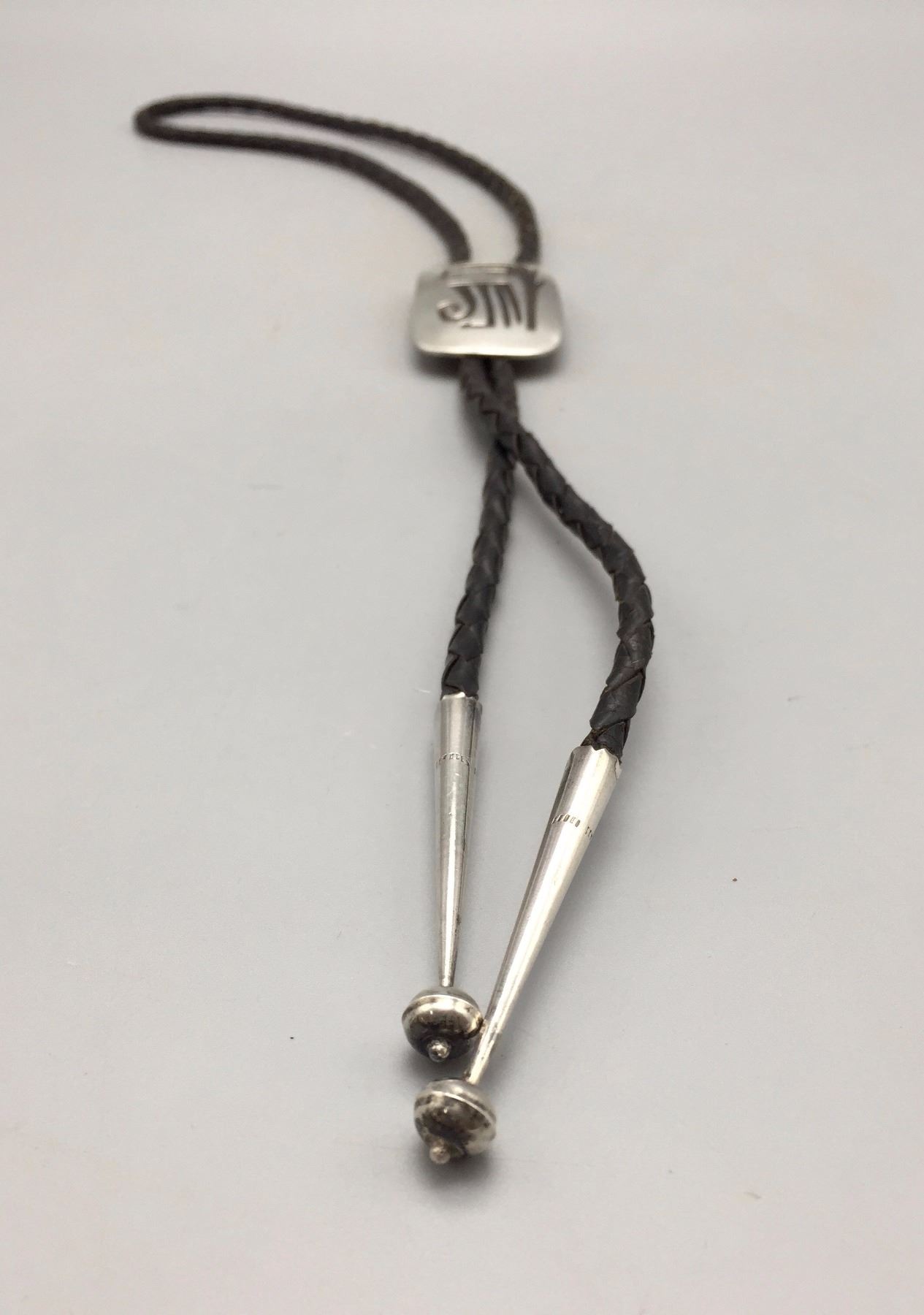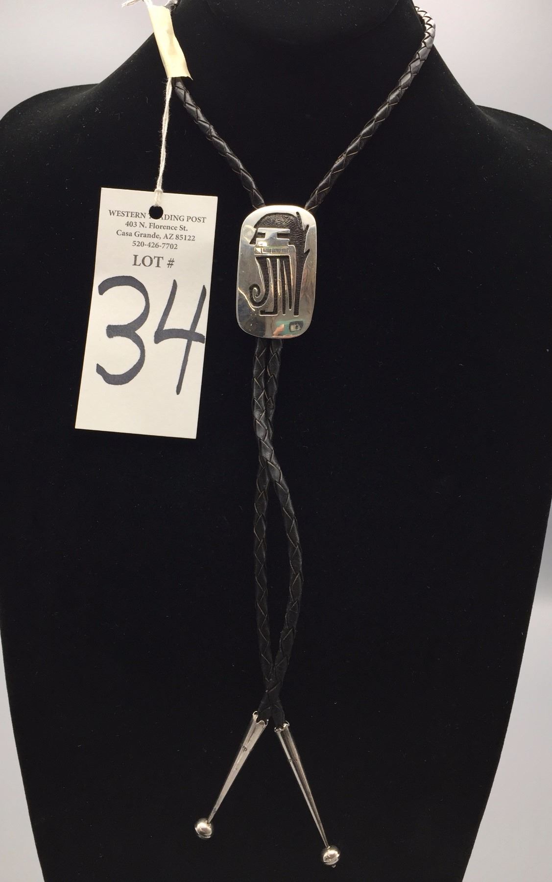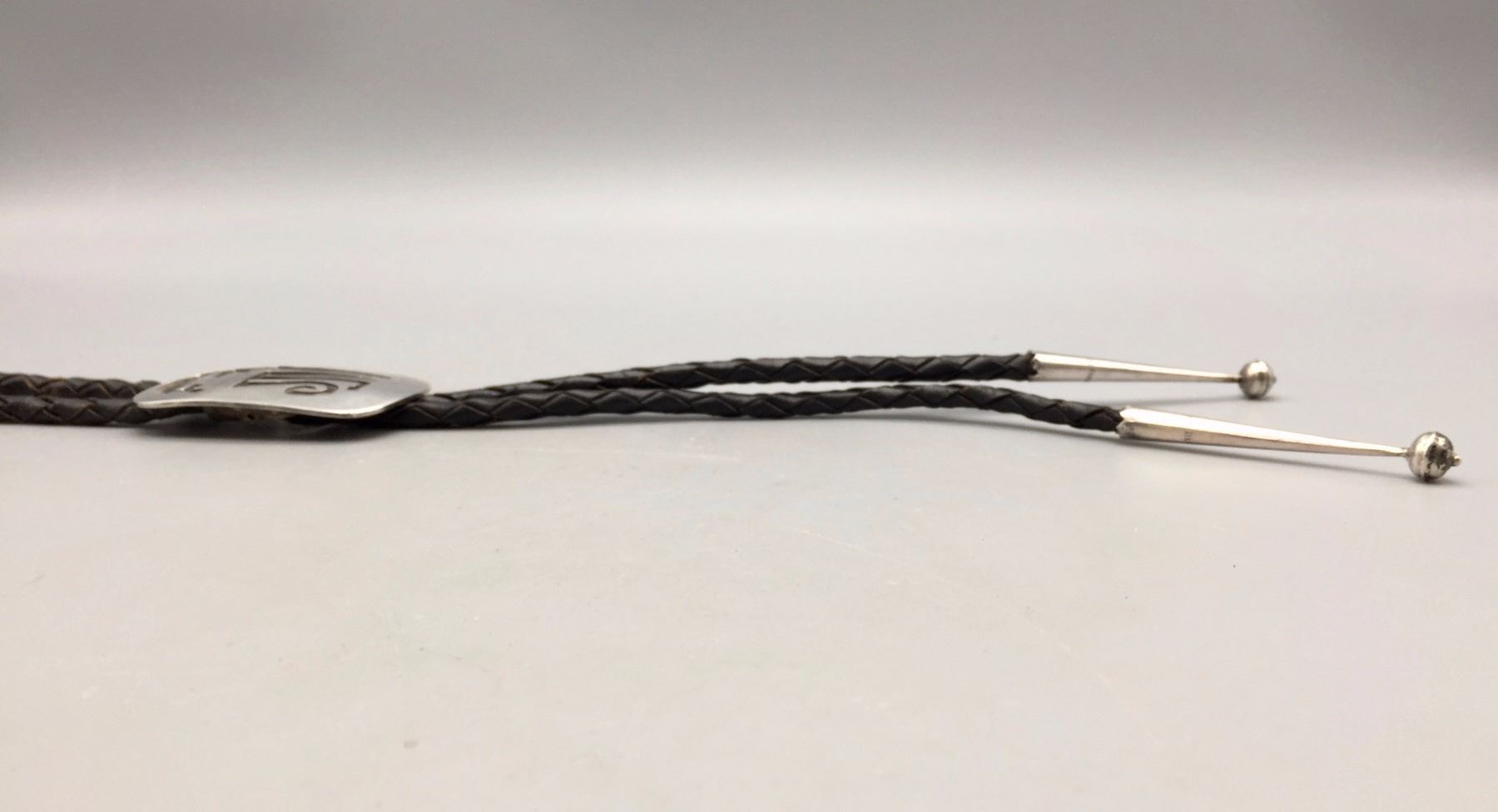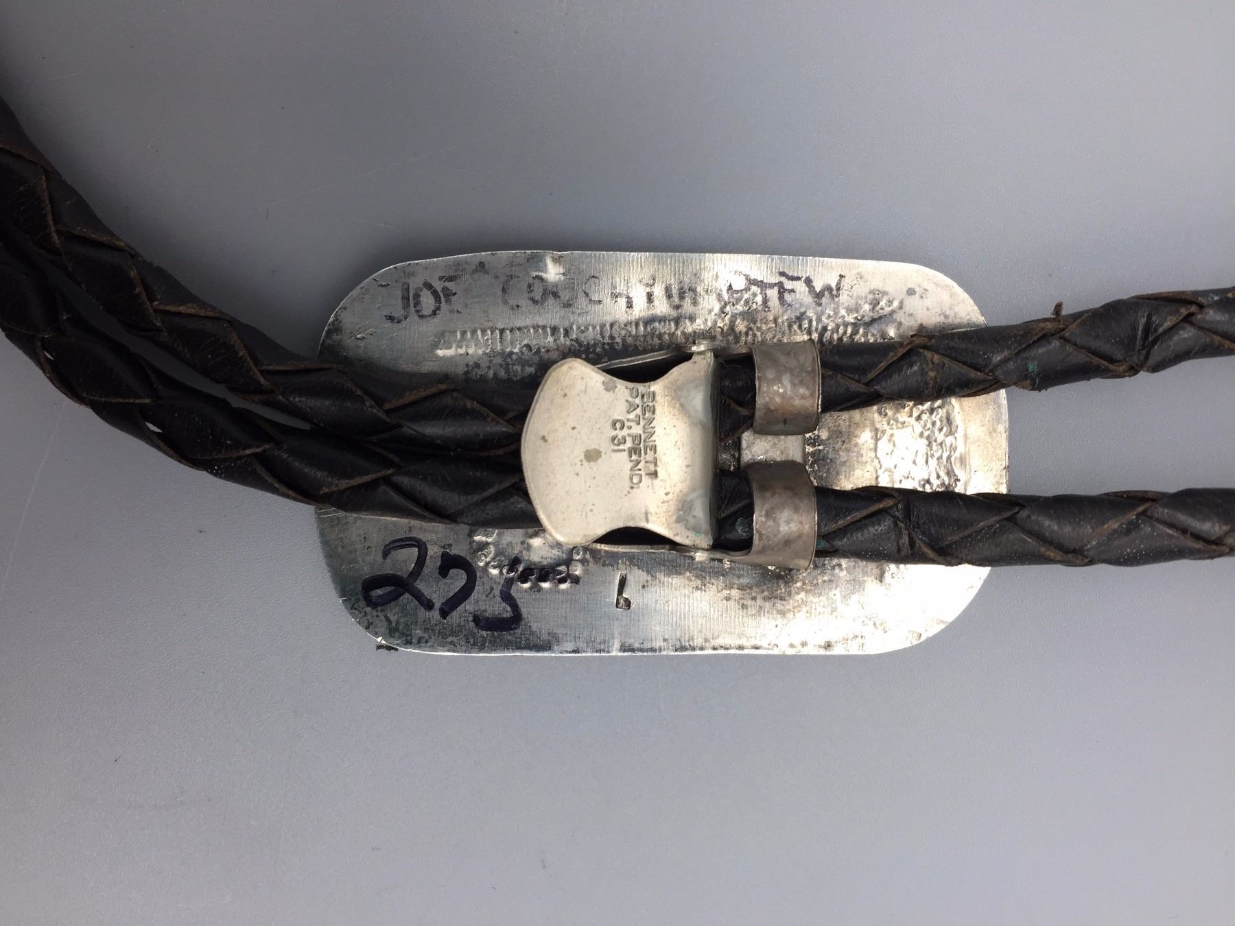 Description: Sterling silver, Hopi made bolo. Maker: Joe Coochwytewa, Hopi. Approx. Age: Vintage, circa 1960s (has a Bennett C-31 clasp on the back which was made from the mid 50s - mid 60s).