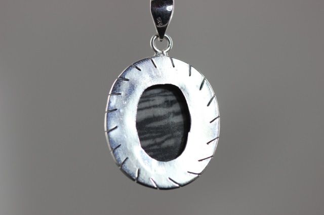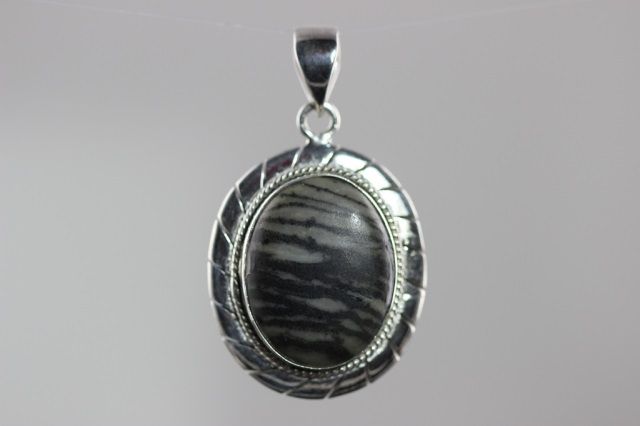 Sterling silver Jasper pendant with a mligrain setting surrounding center stone.