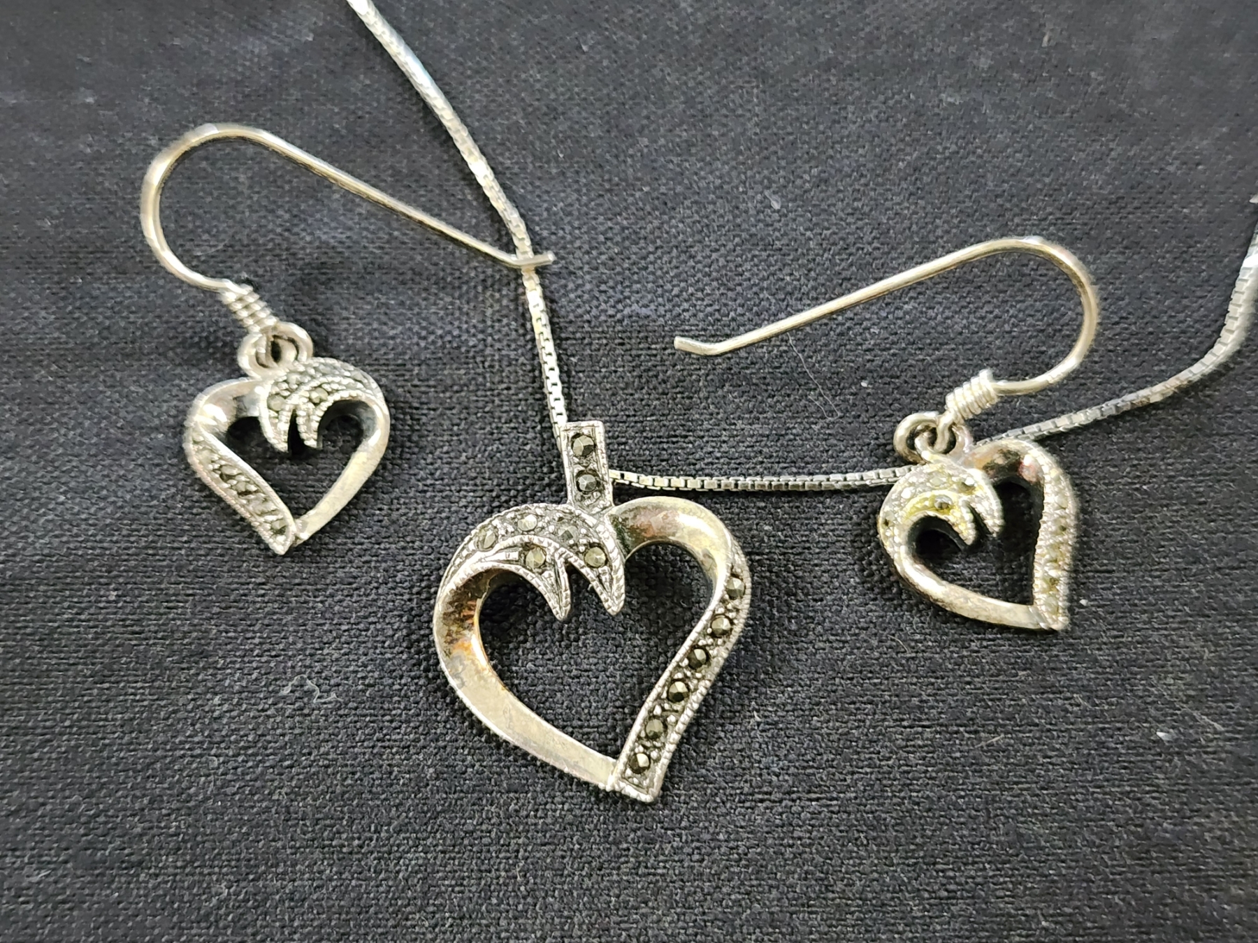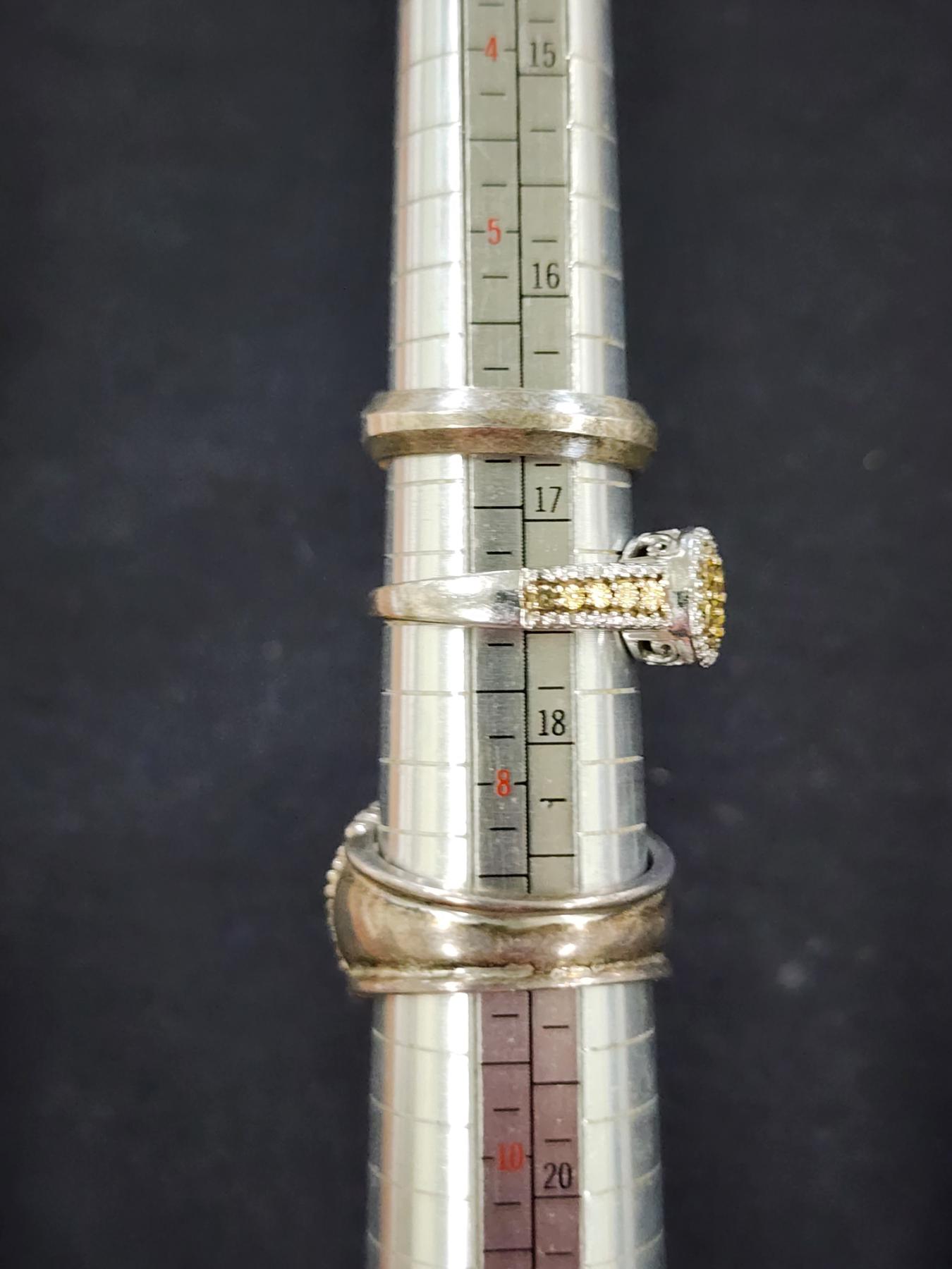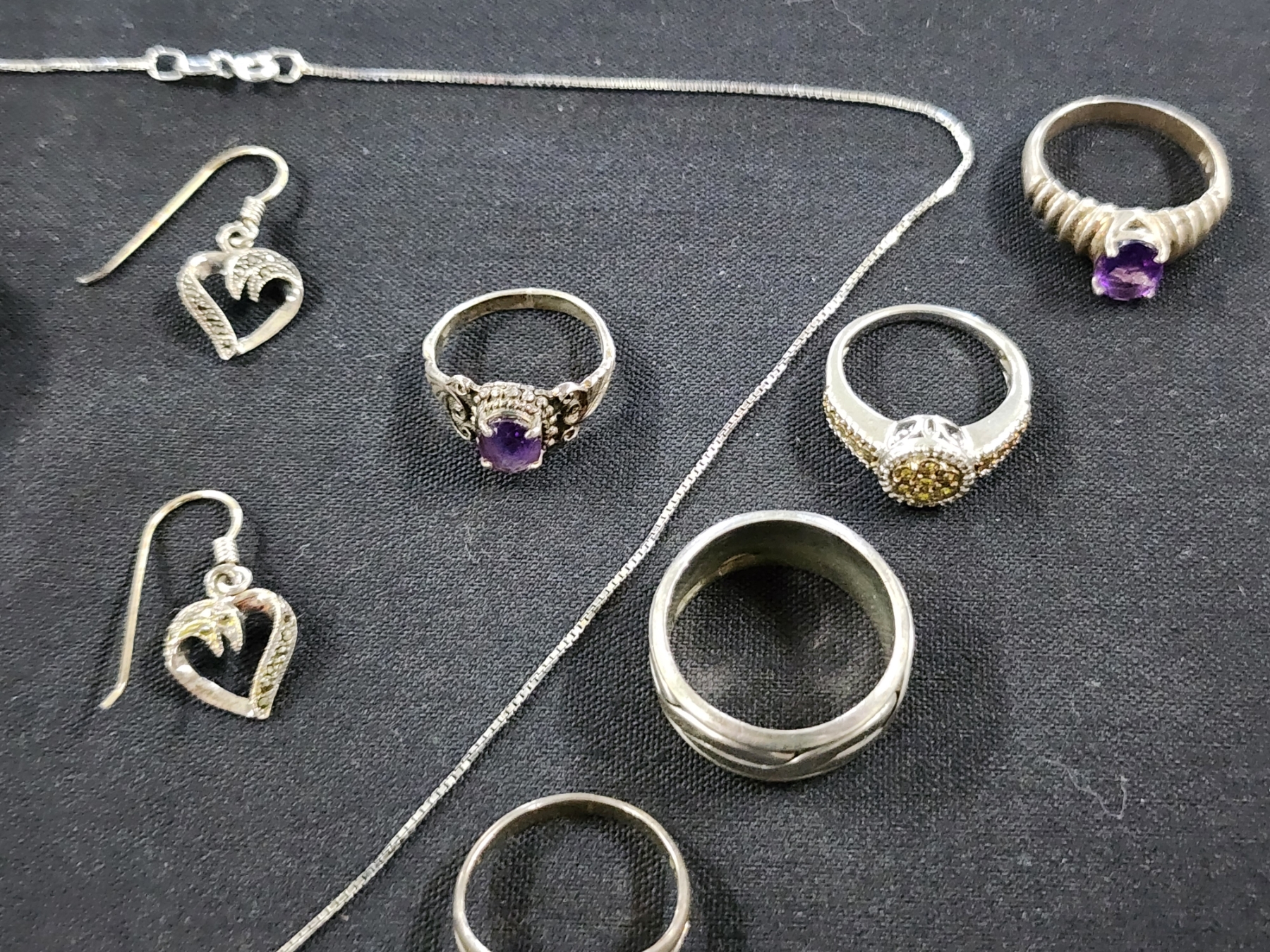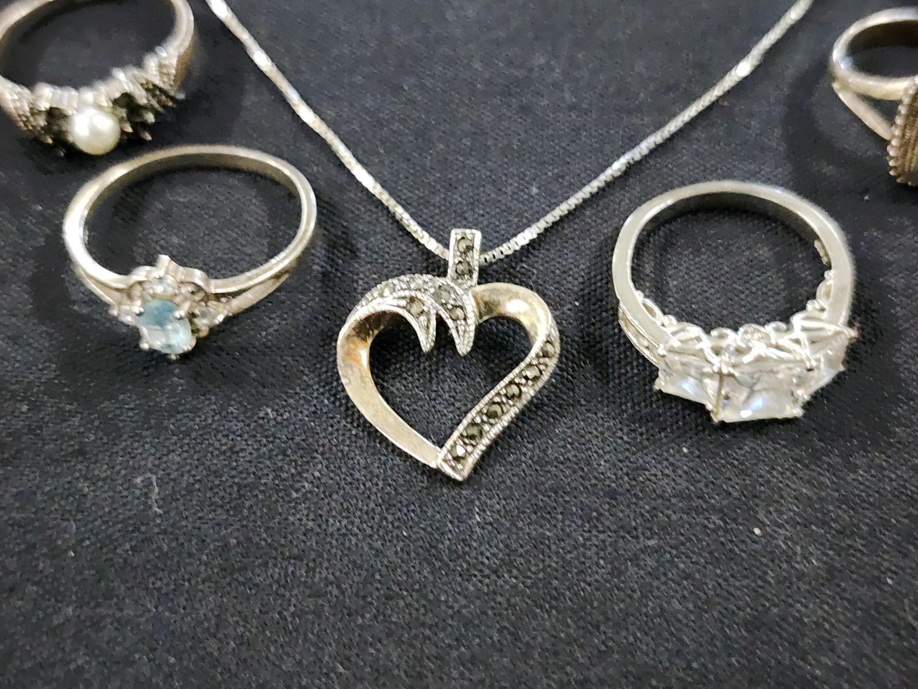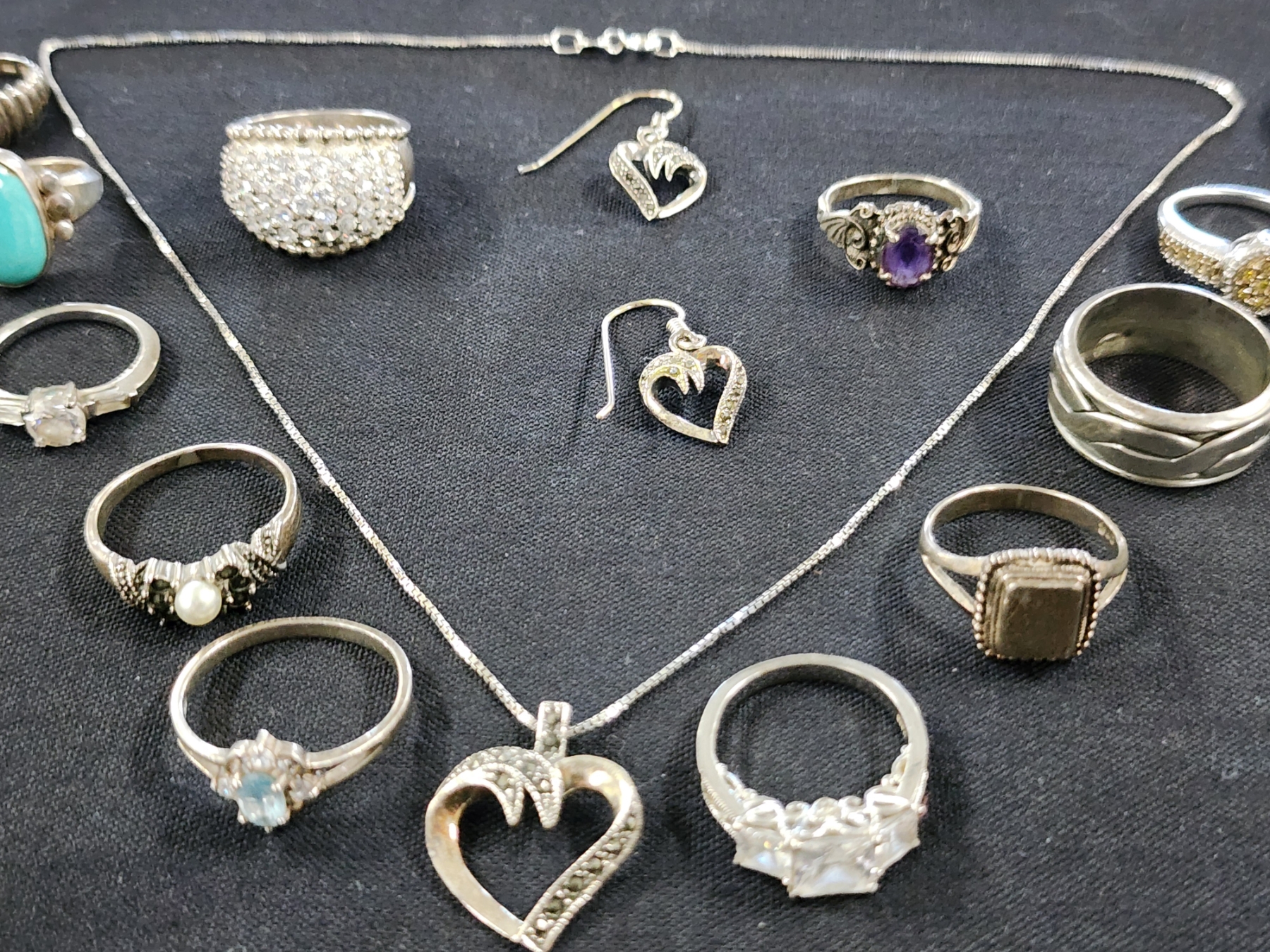 Sterling Silver Jewelry Assortment Featuring Necklace, Matching Earrings & Many Rings - Weighing About 61.2 Grams