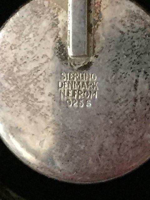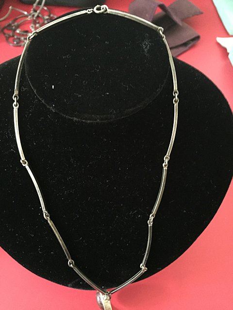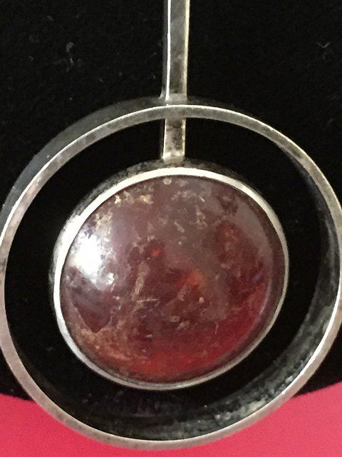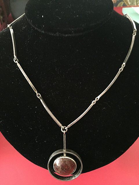 Sterling silver ladies estate necklace, made in Denmark, Art Modern Period, possibly original amber stone, signed by the artist with mark.