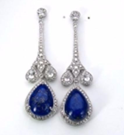Lapis Cabochon Pears 16x12mm - 2Pcs + White Topaz Pears 4x3mm - 4Pcs + White Topaz Round 3.00mm - 2Pcs + White Topaz Round 1.80mm - 4Pcs