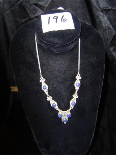 Sterling Silver 16" Necklace set with Lapis Stone. Weight 22 grams