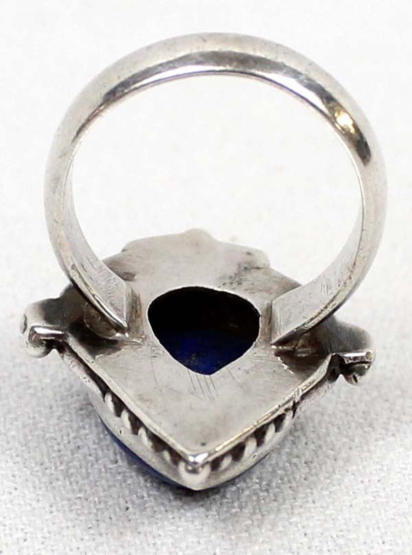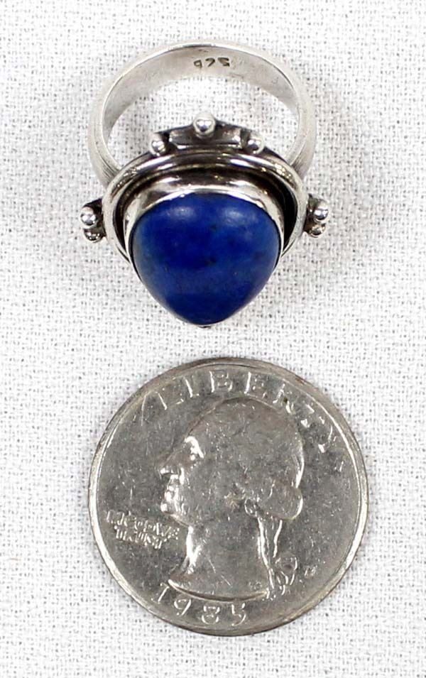 Sterling Silver Lapis Ring, Size 6, measures 1''L x 7/8''W and is stamped .925