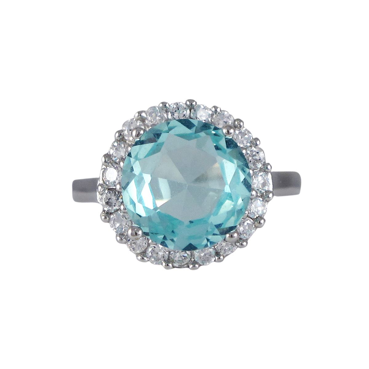 Sterling Silver Light Aqua Round CZ Ring