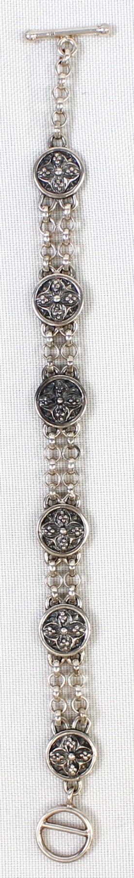 Sterling Silver Link Bracelet, measures 6''L x .25''W, hallmarked Mc and stamped sterling, toggle clasp, 15.69 gtw