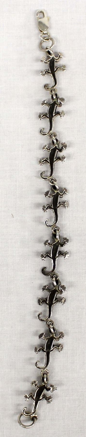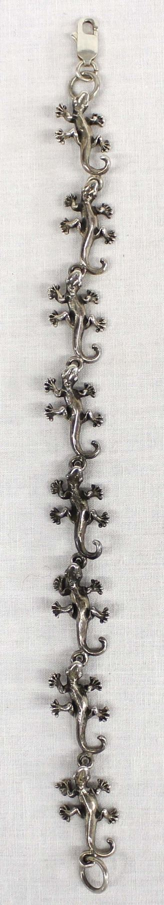 Sterling Silver Lizard Link Bracelet, measures 7''L end to end, features 8 lizards joined head to tail, stamped .925