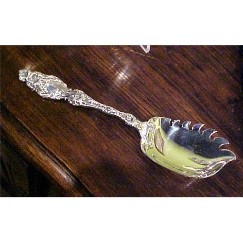 Interesting macaroni or pasta server by Whiting in the "Lily" pattern. It is stamped with the newer lion mark. 9.25" in length.