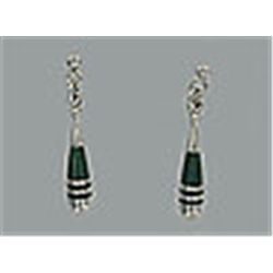 Sterling silver with Malachite Inlay, dangle post earrings, ¾ in length