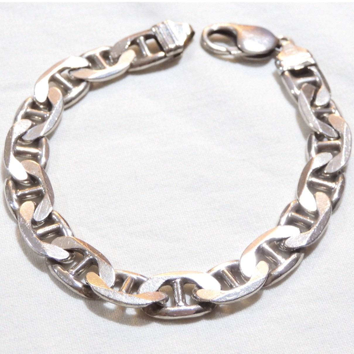 Sterling Silver Mariner Link Bracelet with Lobster Clasp. Total weight of 30.9 grams.