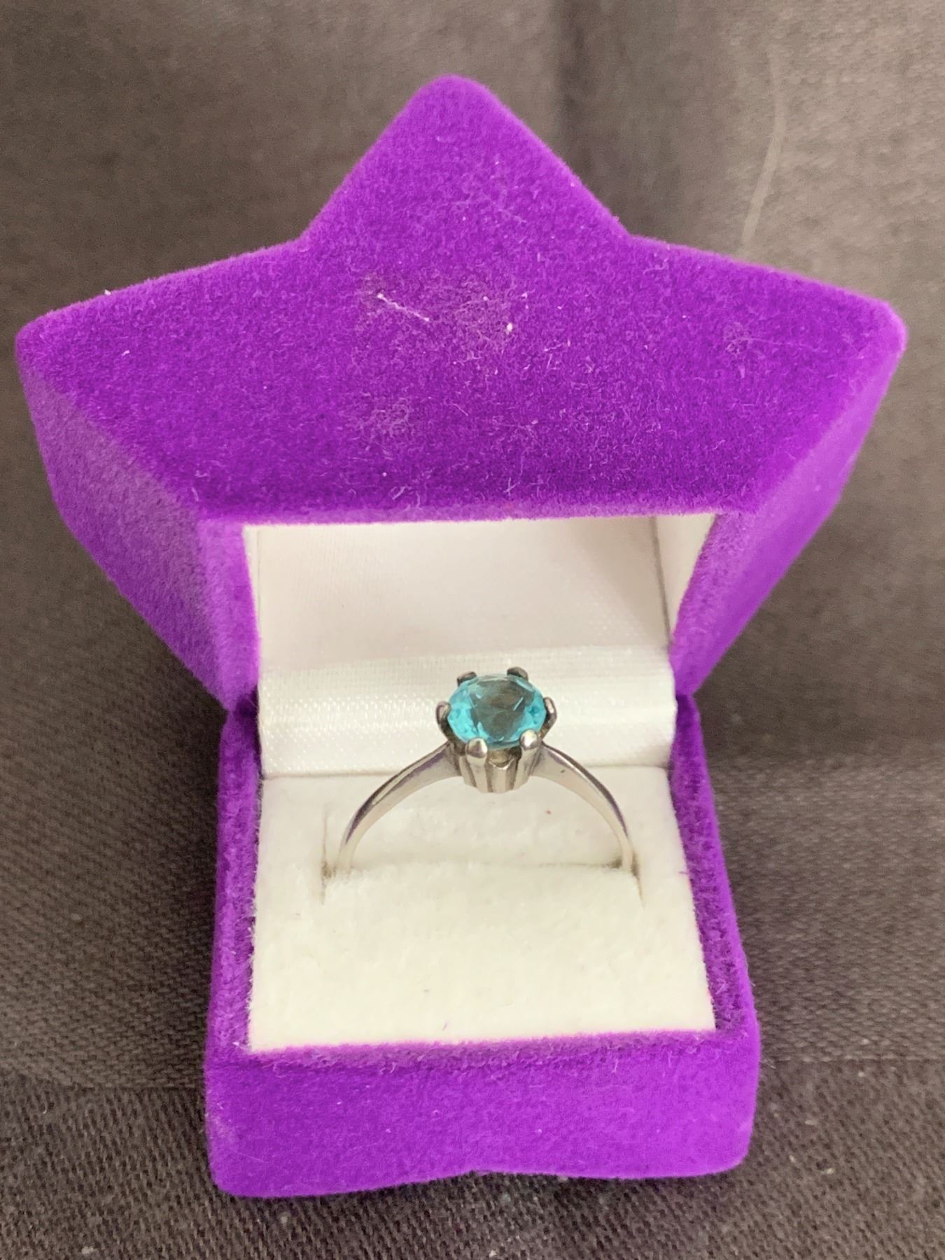 Sterling Silver Marked 925 Cz Blue Stone Size 8 Ring