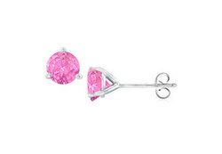 A pair of perfectly matched round created pink sapphires are 3-prong martini setting in a high polished .925 sterling silver rhodium with back finding push-back. These gemstone stud earrings have a total combine stone weight (TGW) of 2.00 carats.