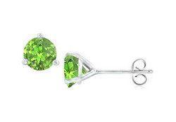 A pair of perfectly matched round peridots are 3-prong martini setting in a high polished .925 sterling silver rhodium with push-back lock type. These gemstone stud earrings have a total combine stone weight (TGW) of 1.00 carat.