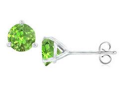 A pair of perfectly matched round peridots are 3-prong martini setting in a high polished .925 sterling silver rhodium with push-back lock type. These gemstone stud earrings have a total combine stone weight (TGW) of 2.00 carats.