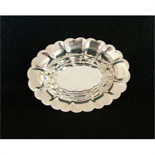 I found this lovely little sterling master salt dish in an Estate sale not too long ago.. It sits flat on a surface with two tiers of fluting. There is a narrow band of fluting around the bottom which flares out into a larger, gentle design. The outer rim is gracefully scalloped.<p>This lovely, oval-shaped little dish measures 4.25 inches by 3.25 inches. It stands about 1/2 high.<p>It's condition is excellent. Very minor scratches of wear in the center where one might expect to find them. There are no dents or bends in the fine silver.<p>On the bottom the word Sterling appears. This is also a little worn and attests to it's age. Finely etched on one end of the bottom are the letters ccs over ocs. I'm not sure what this signifies. <p>