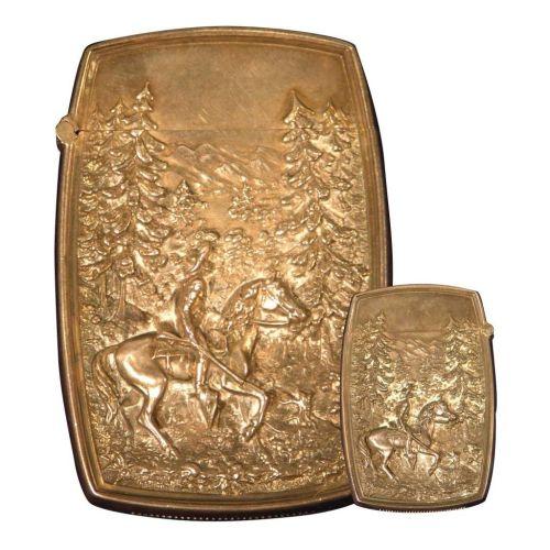 Sterling Silver Match Safe with Mountain Man on Horseback. Very high relief. Excellent condition. 1 3/4 X 2 1/2 inches.