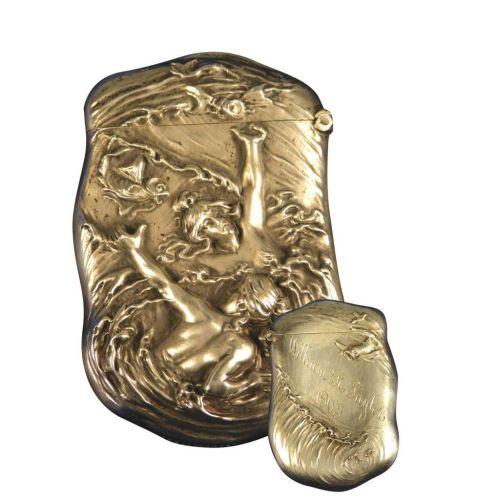 Sterling Silver Match Safe with high relief figures in whirlpool on front and inscription, William R. Taylor, 1905 on back. Excellent condition. 1 3/4 X 2 3/4 inches.