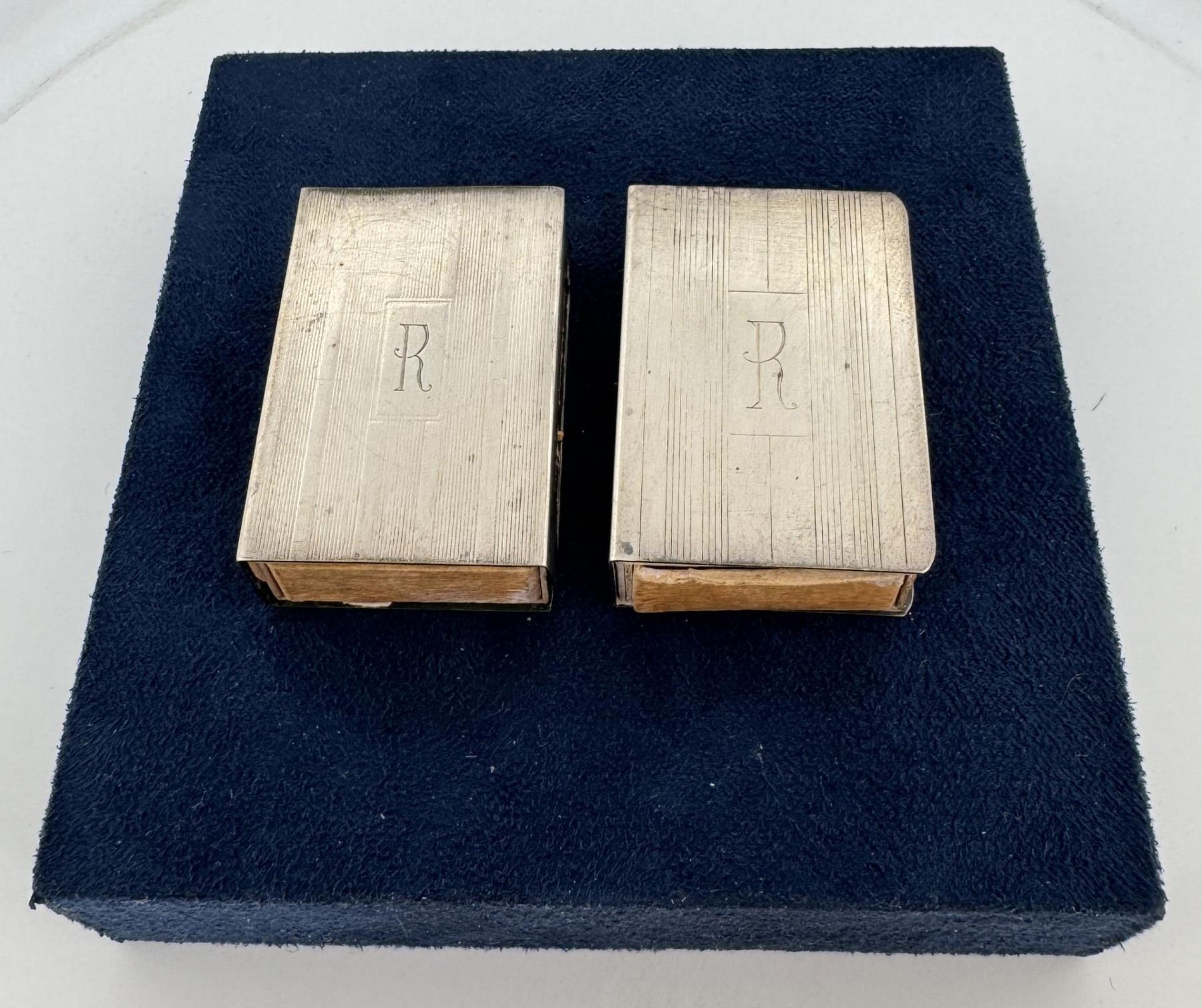 1 5/8" by 1 1/8" by 1/2". 22.36 grams. Monogrammed R.