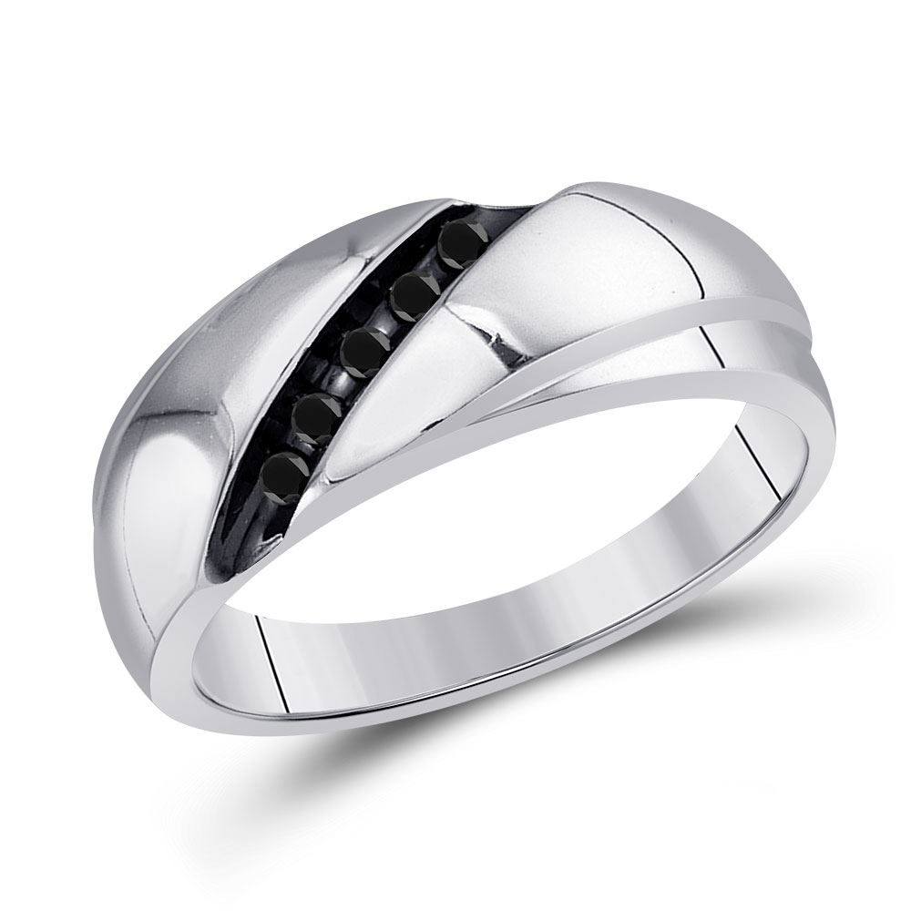 Sterling Silver Mens Round Black Color Enhanced Diamond Diagonal Row Band Ring 1/8 Cttw