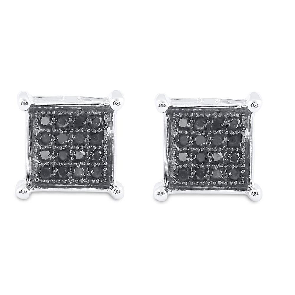 Sterling Silver Mens Black Color Enhanced Diamond Square Cluster Earrings 1/10 Cttw Sterling Silver