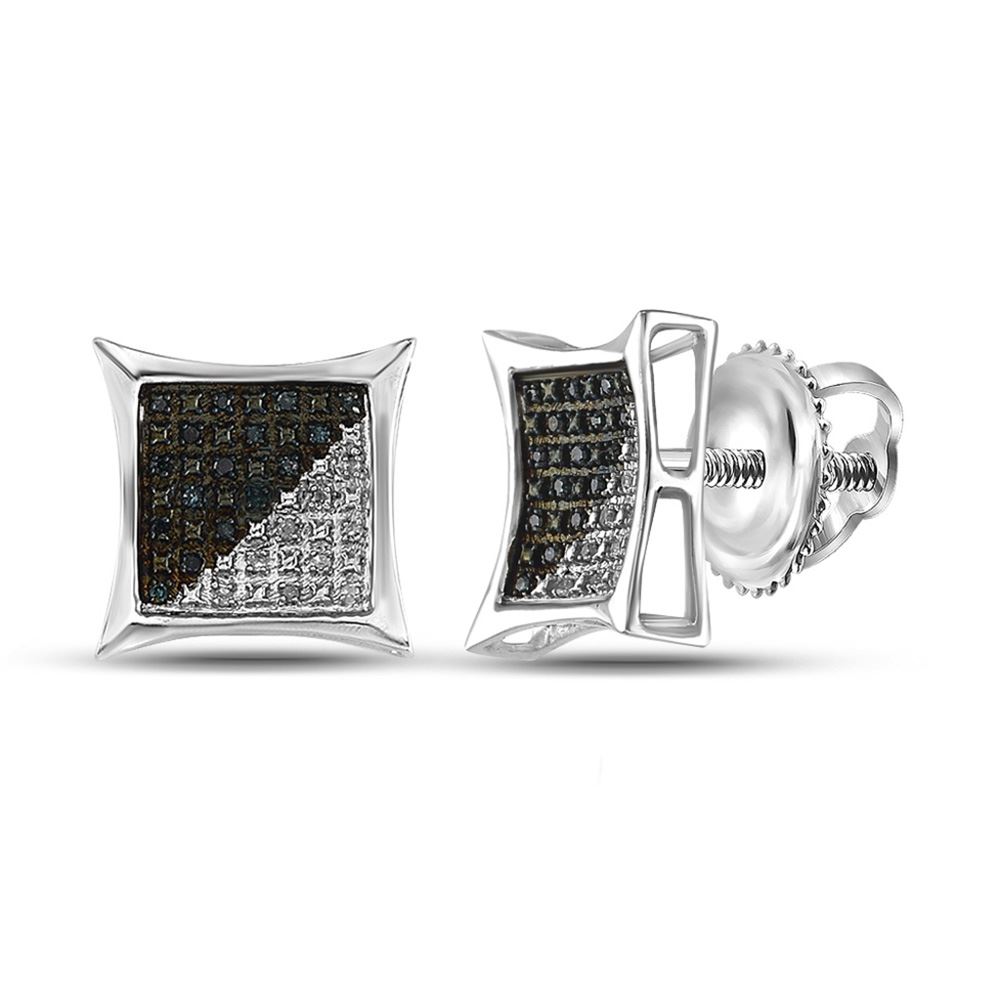 Sterling Silver Mens Round Blue Color Enhanced Diamond Square Earrings 1/6 Cttw