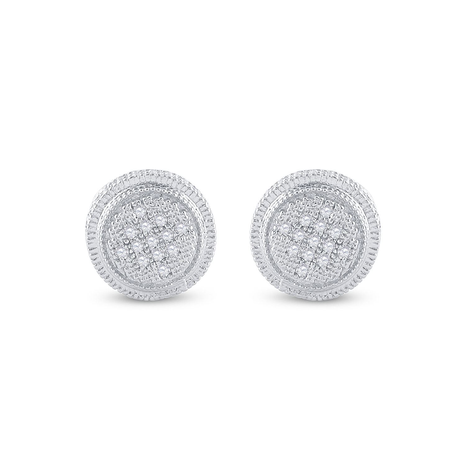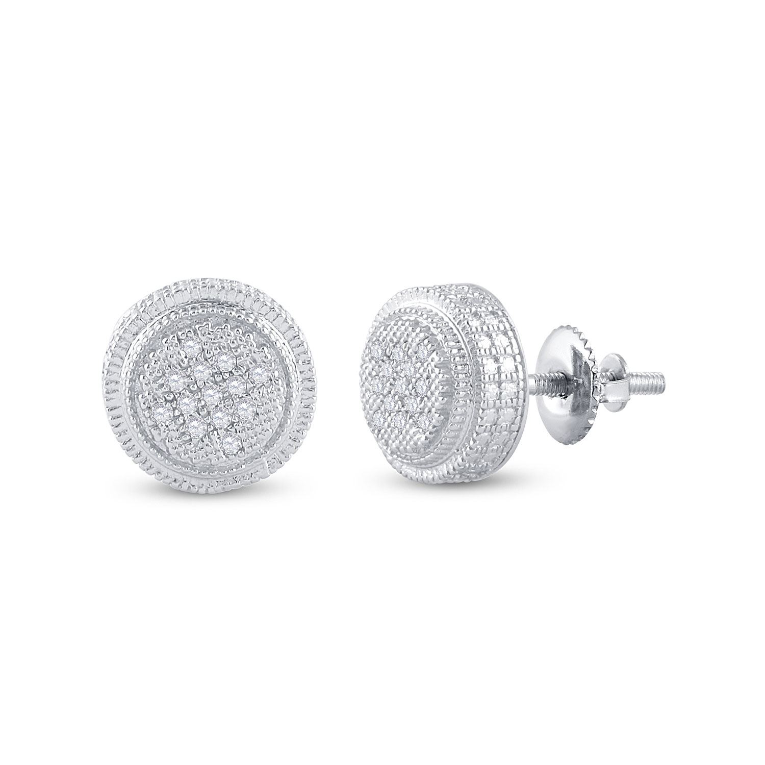 Sterling Silver Mens Round Diamond 3D Circle Disk Earrings 1/20 Cttw