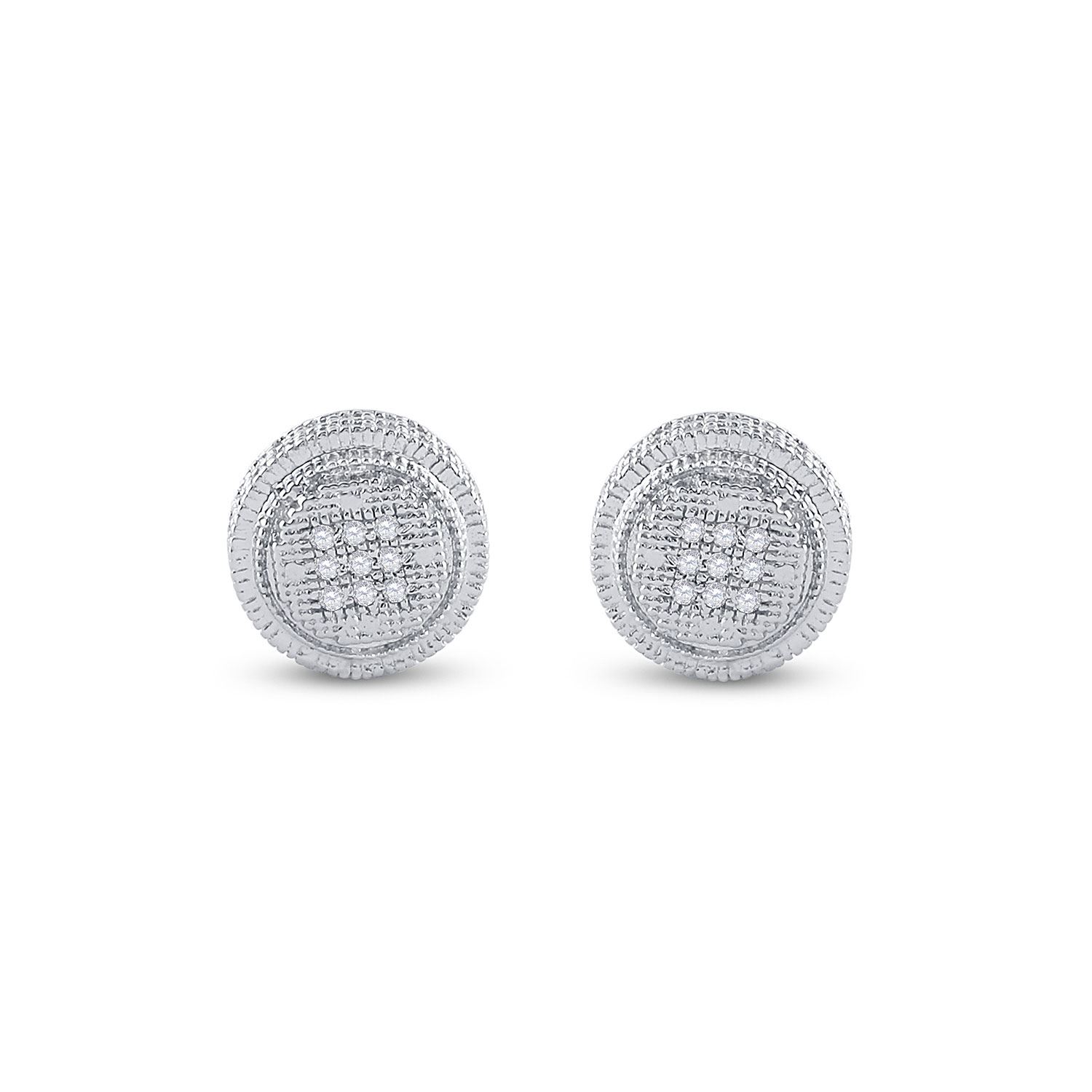 Sterling Silver Mens Round Diamond Circle Disk Stud Earrings 1/20 Cttw