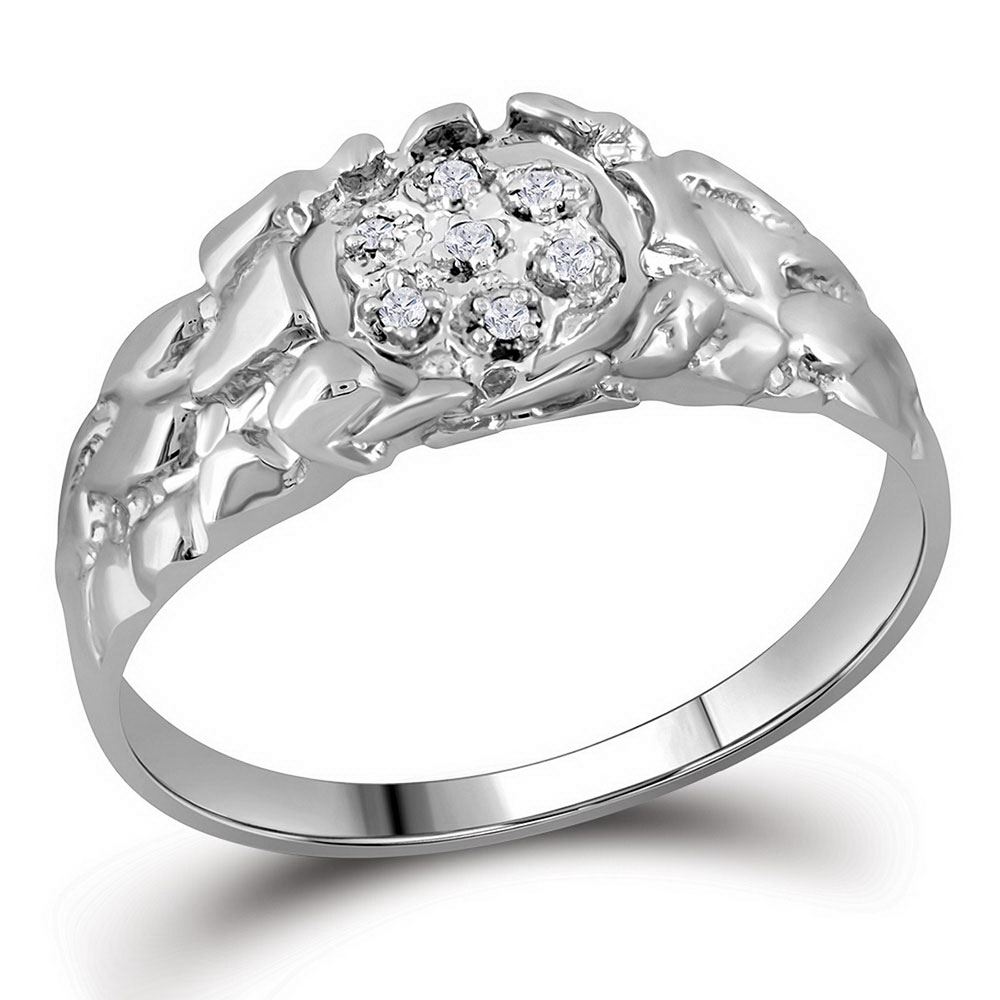 Sterling Silver Mens Round Diamond Cluster Nugget Ring 1/20 Cttw