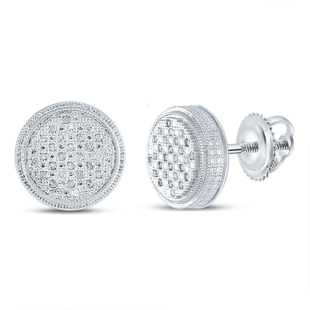 Sterling Silver Mens Round Diamond Disk Circle Earrings 1/6 Cttw